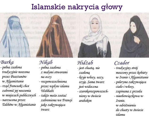 3. Bardzo zainteresowała mnie grafika z rozróżnieniem kobiecych nakryć głowy. Byłam w kilku krajach islamskich, ale nigdy jakoś nie doszłam do tego, które jak się nazywają. Dziękuję 🙂
