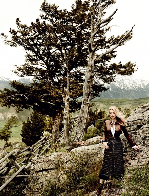 Zdjęcia autorstwa Mario Testino powstały Jackson Hole w stanie Wyoming. Blake nie ma na sobie tamtejszych oryginalnych strojów, ale dzieła marek Chanel, Lanvin, Tommy Hilfiger, Marc Jacobs, Marni, The Row, Ralph Lauren, Michael Kors czy Calvin Klein.