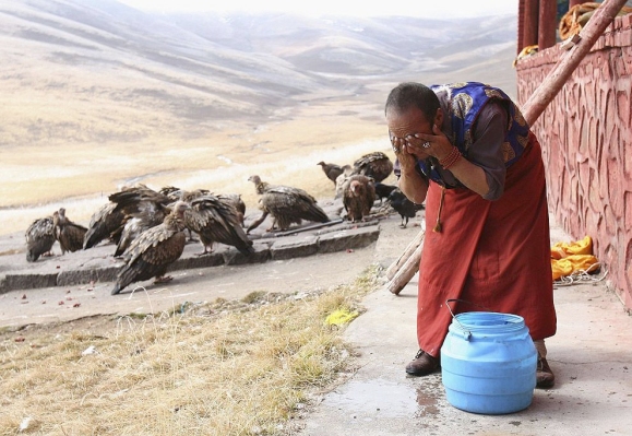 Tybetańscy wyznawcy Buddyzmu do dnia obecnego praktykują makabryczny i przerażający rytuał nazywany Jhator (czyli podniebny pogrzeb). Wyznawcy tej religii wierzą w cykl odrodzenia, w związku z tym nie ma dla nich potrzeby przechowywania ludzkich zwłok, ponieważ dusza człowieka po śmierci znalazła się w innej krainie. Dlatego też zwłoki transportowane są na otwarte tereny znajdujące się na dużej wysokości. Następnie ciała zmarłych rozczłonkowywane są i porzucane na pastwę drapieżnego ptactwa!