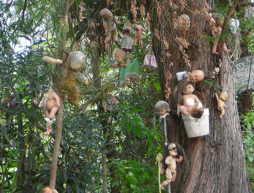 Wszystko to za sprawą setek zwisających z drzew lalek, które w żaden sposób nie przypominają uroczych, dziewczęcych zabawek – brudne, z popękanymi oczami, bez kończyn.