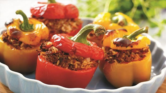 Czyli faszerowane papryki, pomidory, nierzadko także cukinie i bakłażany. Tak samo lubiane są tutaj dwie wersje farszu, z samego ryżu i z ryżu z mięsem mielonym. Całość zapieka się mocno skropione oliwą z oliwek, zazwyczaj razem z kawałkami ziemniaków, które miękną i wchłaniają tworzący się sos z warzyw.