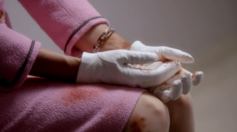 the-kennedys_katie-holmes_pink-suit-blood_cap