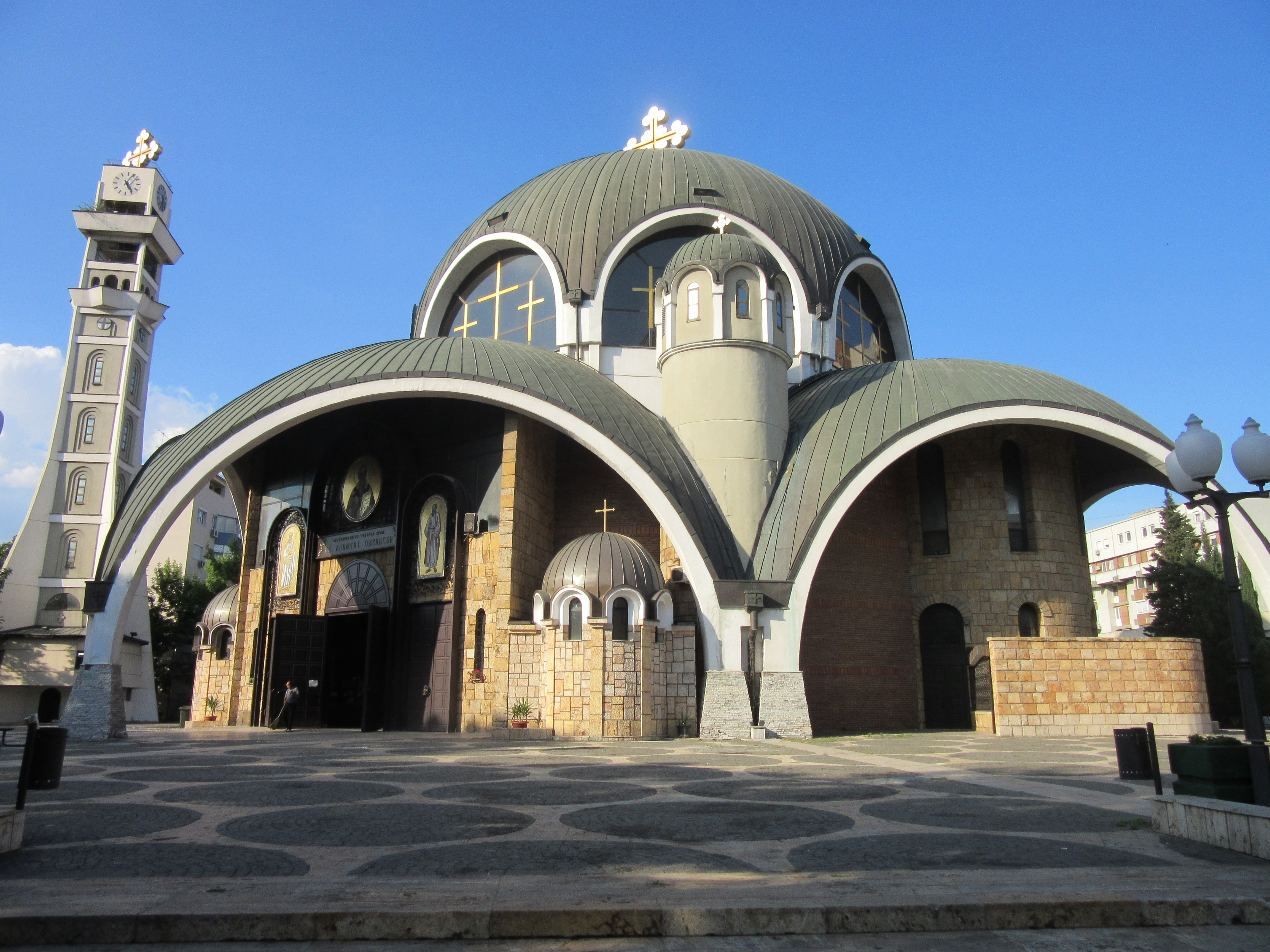 Ale Skopje to nie tylko „nowoczesna starówka” i Stara Czarszija. Jest również wiele innych ciekawych miejsc, którymi Skopje może się pochwalić. Jedną z nich jest cerkiew św. Klimenta Ochrydzkiego, która należy do najciekawszych architektonicznie budynków współczesnego miasta. Śmiało poprowadzone półokrągłe linie, imponująca i oryginalnie skomponowana kopuła, ładna dzwonnica, a całość nowoczesna, choć jednocześnie wpisująca się w rodzimą tradycję architektoniczną.