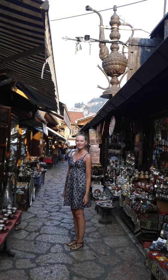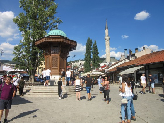 Centralnym punktem bazaru jest Sebilj – charakterystyczna studzienka wyglądem przypominająca grzybek, będąca pozostałością po czasach osmańskich i jednym z pierwszych wodociągów w Europie. Kiedyś tego typu studni było w mieście ponad 100. Woda jest zdatna do picia i smaczna. Mówi się, że kto napije się wody z tej studni, nigdy nie zapomni Sarajewa. Co prawda ja się nie skusiłam, ale z całą pewnością o Sarajewie nigdy nie zapomnę 🙂