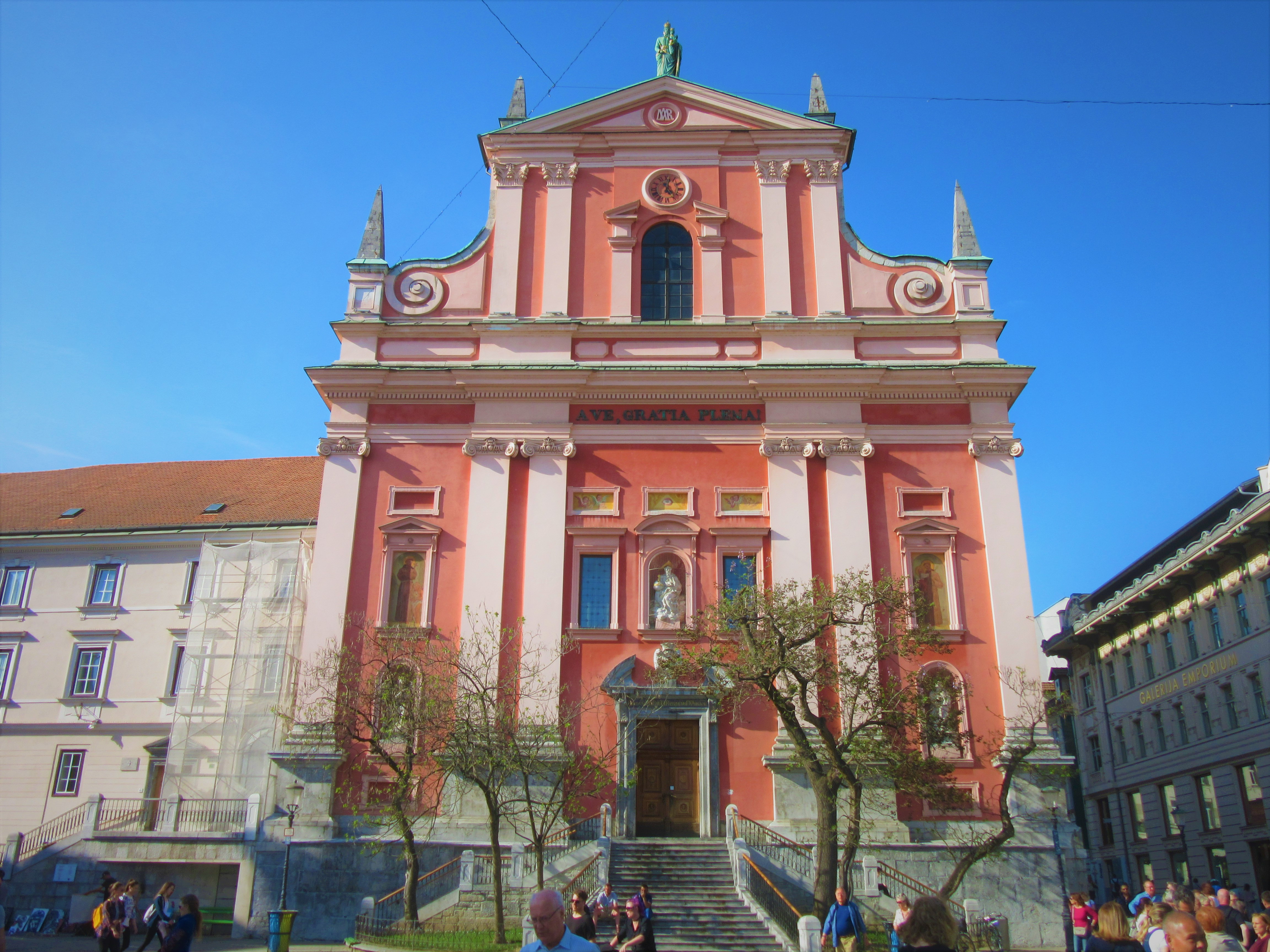 Stare Miasto i nadbrzeże Lublanicy dostarczają malowniczych widoków. Starówka jest bardzo zadbana, a wyłożone brukiem uliczki prowadzą nas do różnych zakamarków centrum. Przy Placu Prešerena znajduje się jeden z najbardziej charakterystycznych punktów w mieście, Franciszkański kościół z różową fasadą i przyległy do niego klasztor. Oczywiście znajdziemy tam wiele obdrapanych budynków, ale uważam, że ma to swój urok i jak najbardziej pasują one do panoramy Lublany.
