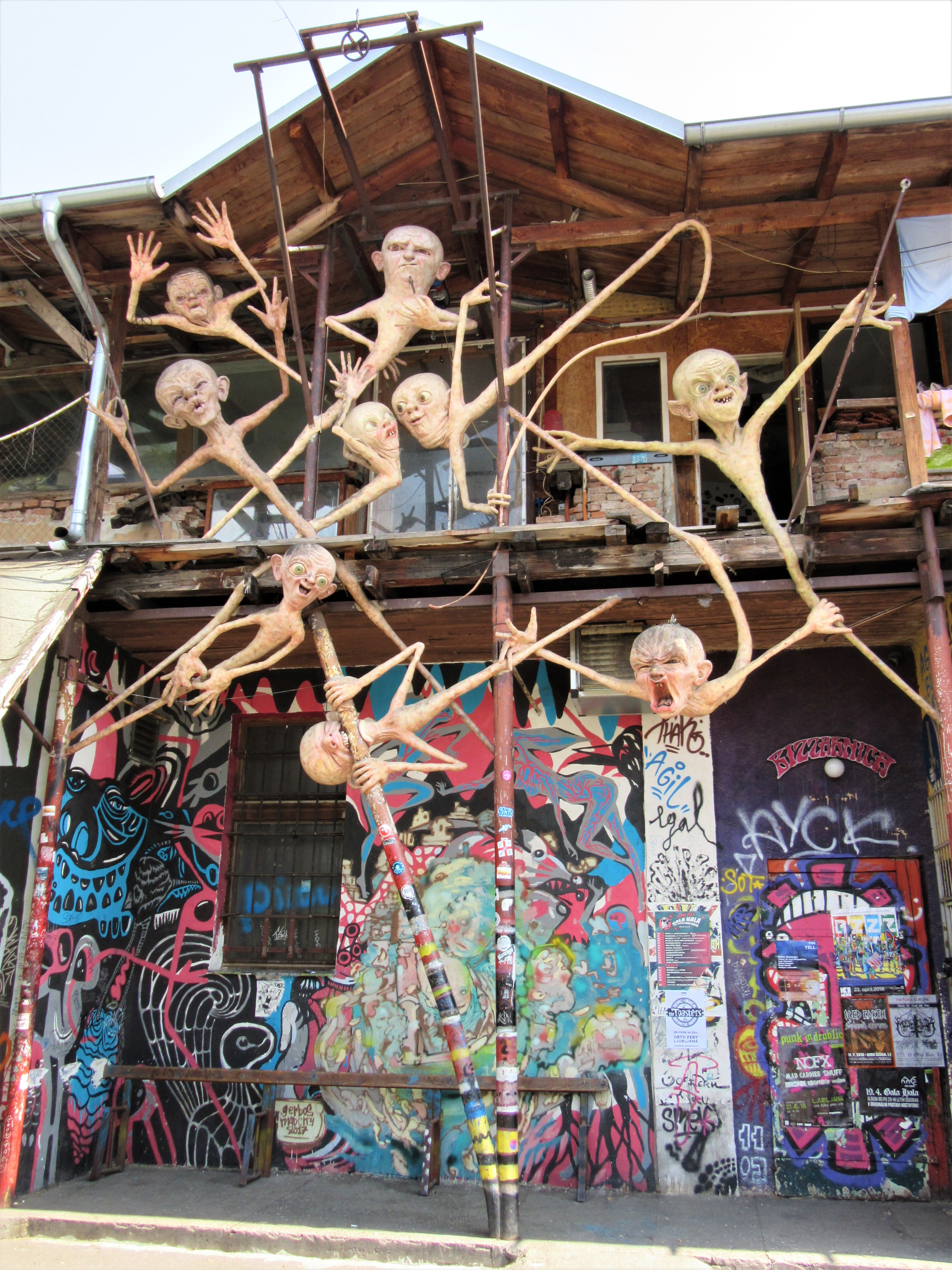 Jeśli komuś znudzą się widoki słodkiej, romantycznej Lublany i chce zobaczyć coś innego, alternatywnego, powinien wybrać się na ulicę Metelkovą. Jest tam pewne artystyczne podwórko, zupełnie oderwane od rzeczywistości. Określane mianem niezależnego centrum kulturalnego w Lublanie, znajduje się na terenie opuszczonych przez byłą armię jugosłowiańską koszar. Możemy znaleźć tam galerie sztuki, pracownie artystyczne i rękodzielnicze, czytelnia, kluby muzyczne i mniejszości seksualnych oraz liczne bary. Przyznam szczerze, że mam mieszane uczucia co do tego miejsca. Ostatnimi czasy jestem miłośniczką tego typu atrakcji, ale to, co tam zobaczyłam trochę mnie przytłoczyło. Za dużo wszystkiego, takie pomieszanie z poplątaniem. Czułam się tak, jakbym zażyła tabletkę psychotropową, a wszystkie demony i osobiste lęki wyłaniały się, osaczając mnie z każdej strony… Nie mniej jednak miejsce jak najbardziej ciekawe i jak najbardziej polecam tam zajrzeć.