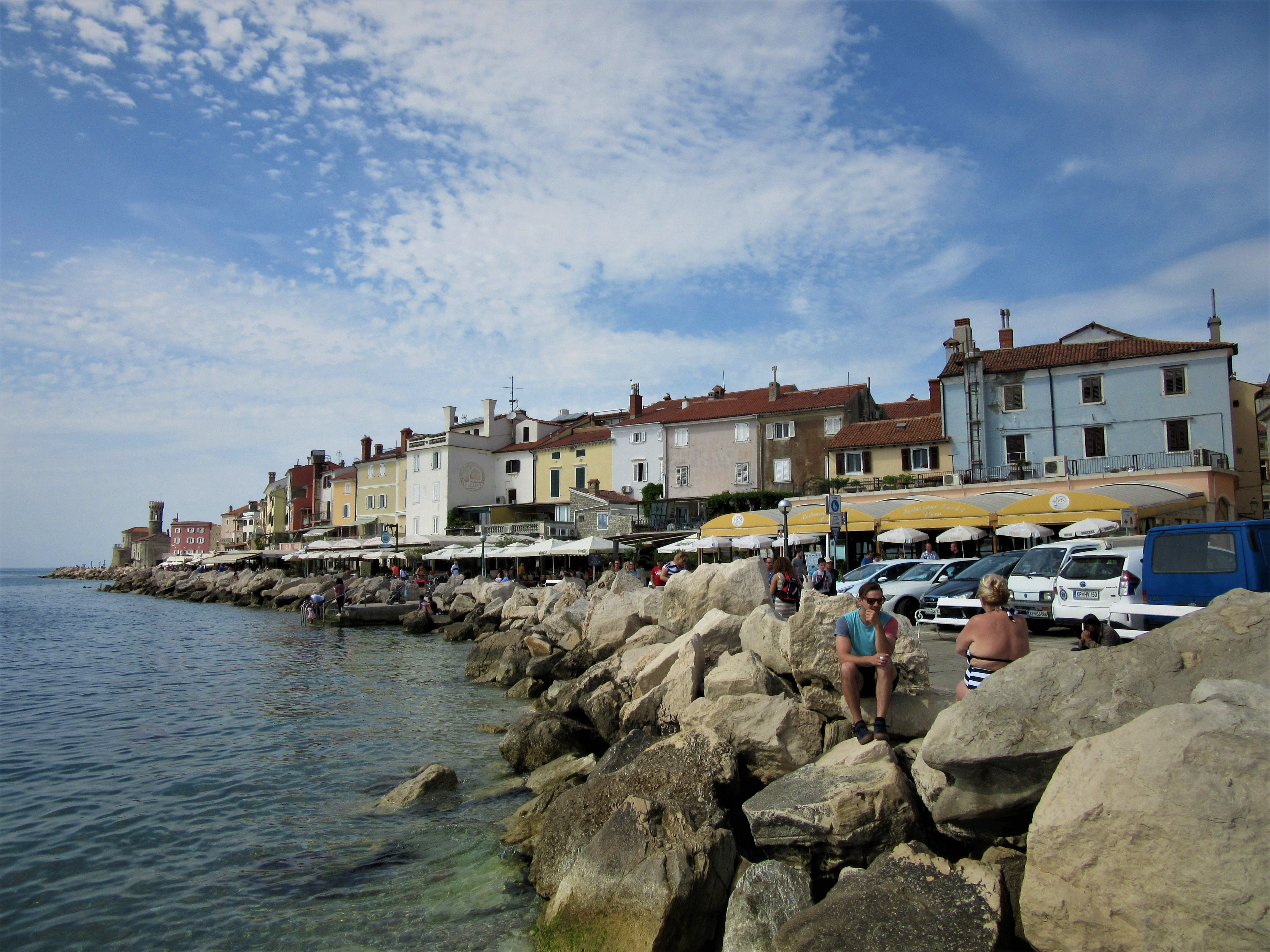 By zobaczyć widoki, które widnieją na każdej pocztówce z Piranu, należy udać się na mury obronne. Trzeba kawałek wejść pod górkę, ale widoki rekompensują ten wysiłek 🙂 Zabawne było to, że w jednym czasie, na jednej z baszt znajdowało się ok. 20 ludzi, a wszyscy z nich byli Polakami 🙂 Żartowaliśmy, że podbiliśmy Piran.