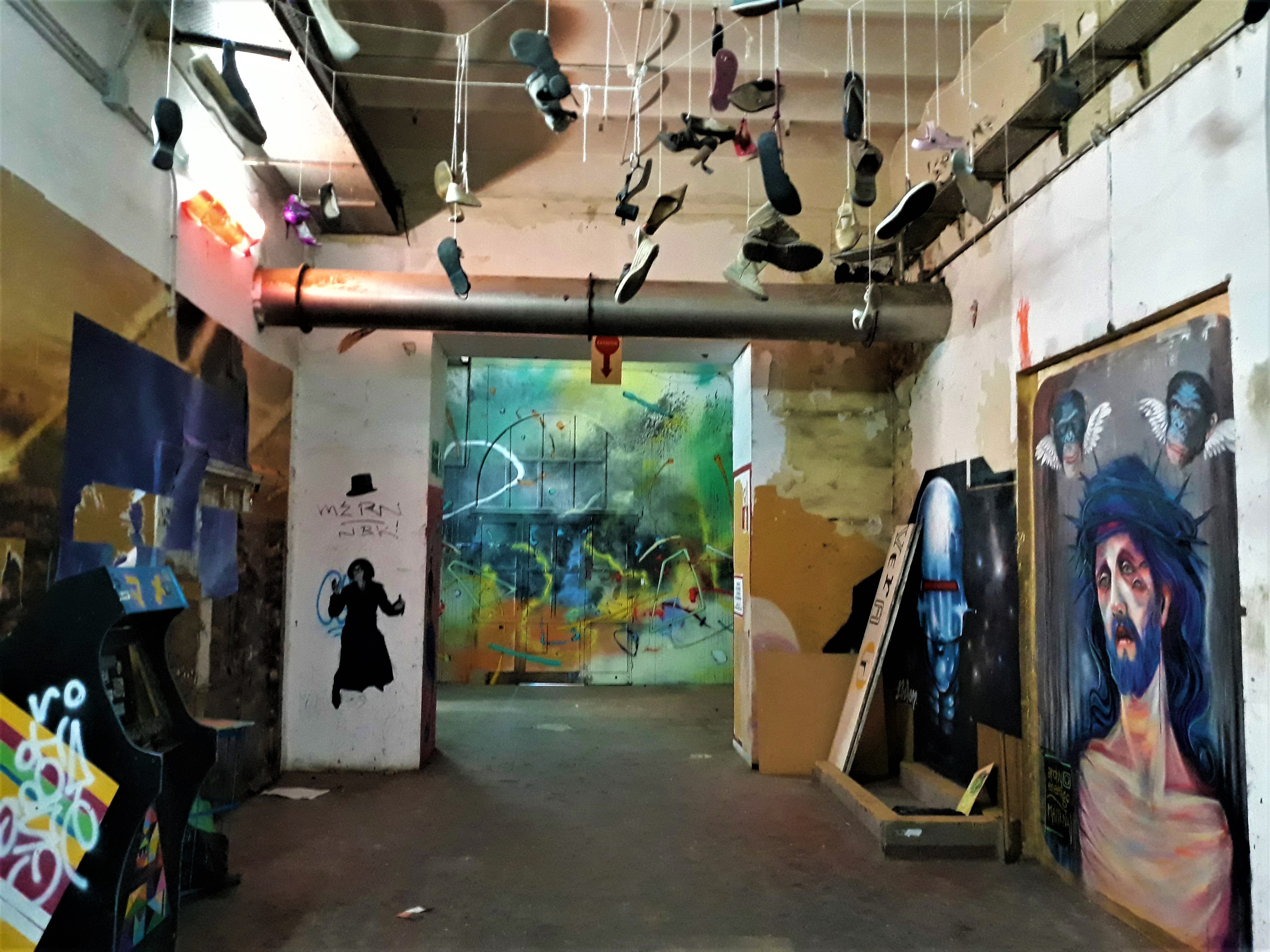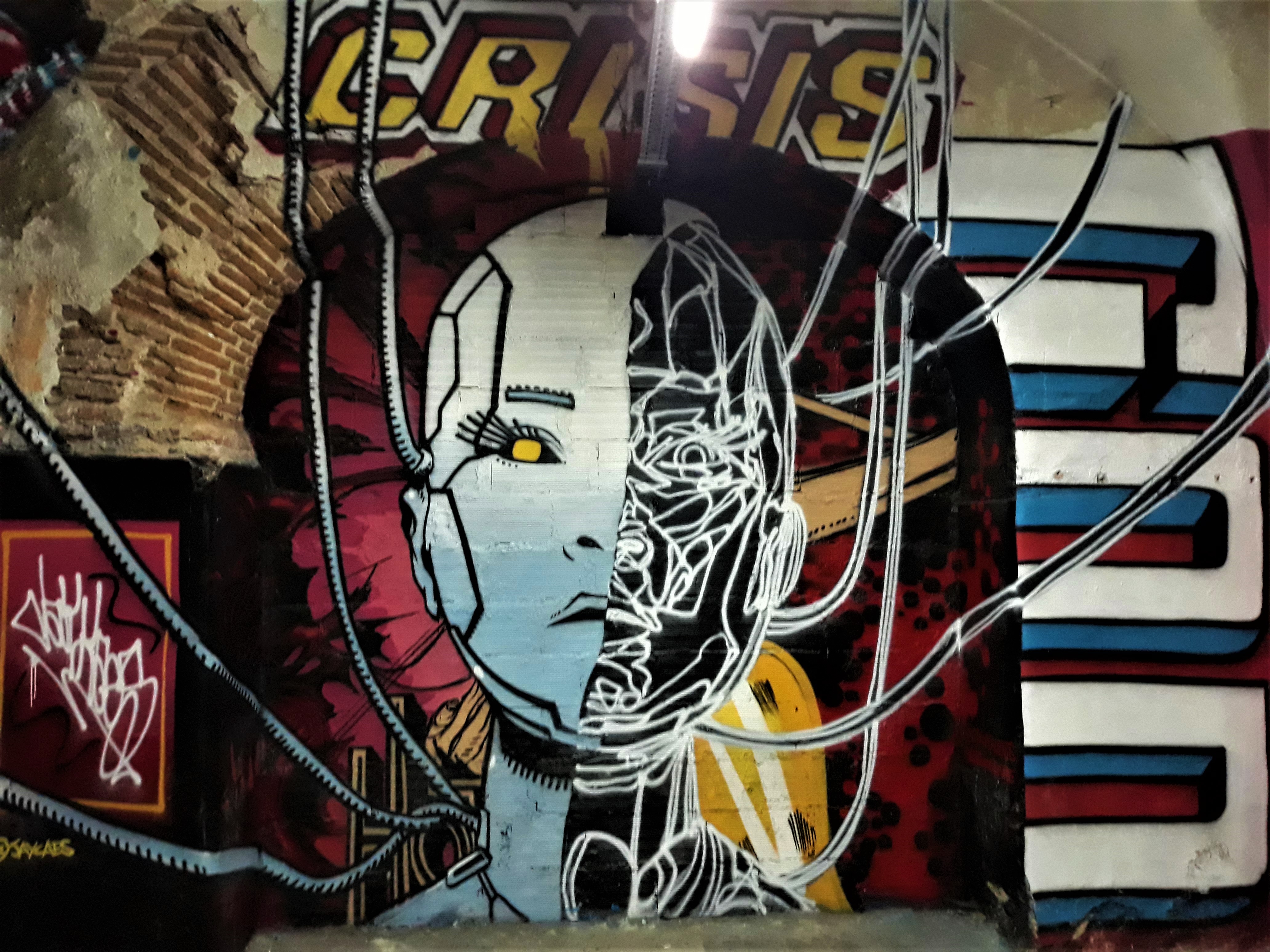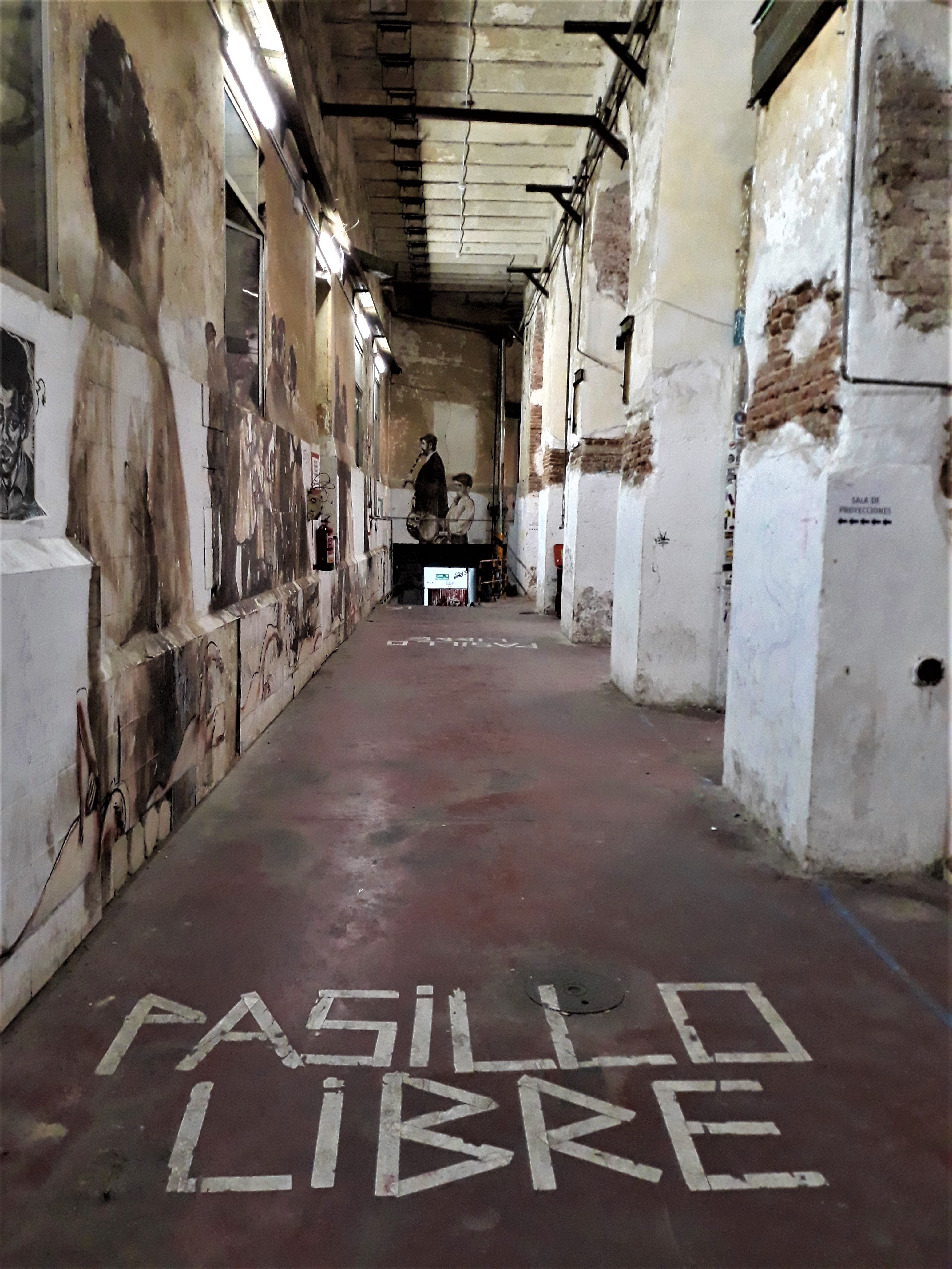 Alternatywne centrum kultury również było powodem, dzięki któremu zawitałam do Madrytu, dlatego choćby nie wiem co, ale musiałam pojawić się tam. Nie miałam zbyt dużo czasu, by móc się na spokojnie pozachwycać, jedynie szybko przebrnęłam przez starą fabrykę, robiąc w biegu zdjęcia. Z zewnątrz miejsce to mówiąc delikatnie – straszy. Surowe ściany, zimne mury i echo. Gdybym nie wiedziała, że w środku znajduje się inny wymiar, nigdy z własnej woli bym tam nie weszła 🙂 Wnętrza rodem z horroru 🙂 W środku unosił się zapach marihuany i na cały regulator rozbrzmiewała hip-hopowa muzyka.