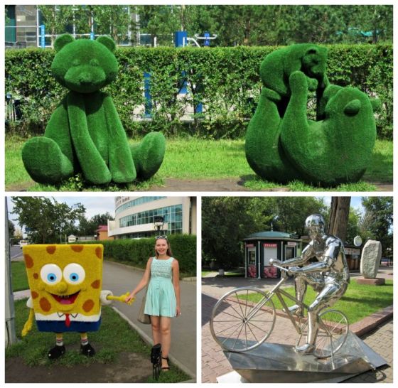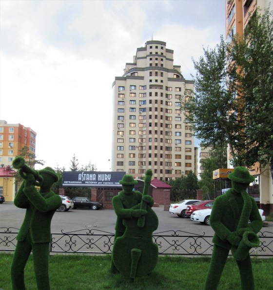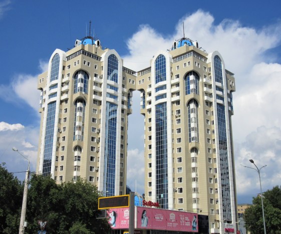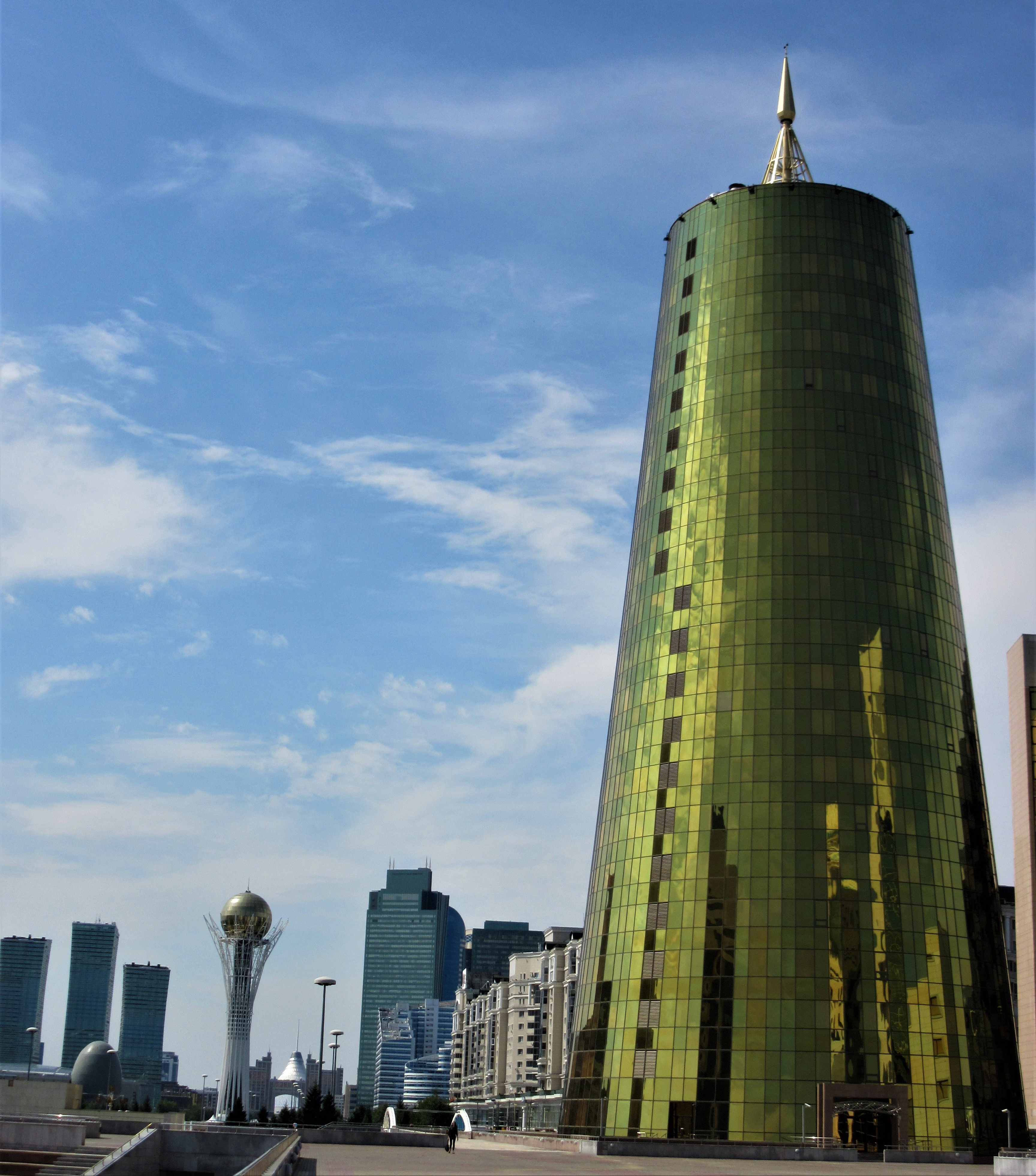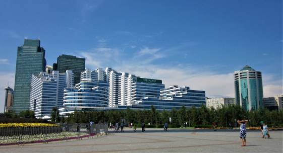 Wokół Bajtereku powstał cały zespół pompatycznych i przytłaczających swą wielkością (i wysokością) budynków ze szkła i betonu, zwany kazachskim Manhattanem. Na mnie nie zrobiło to szczególnego wrażenia. Ilość tych drapaczy chmur, ale również ich zróżnicowanie architektoniczne powodowało, że chciałam stamtąd czym prędzej uciekać. Z jednej strony szklane, niekiedy nawet kosmiczne budynki, z innej ociekające złotem, a obok nich chińska „świątynia”. Zdecydowanie dla mnie za dużo tego wszystkiego na raz.