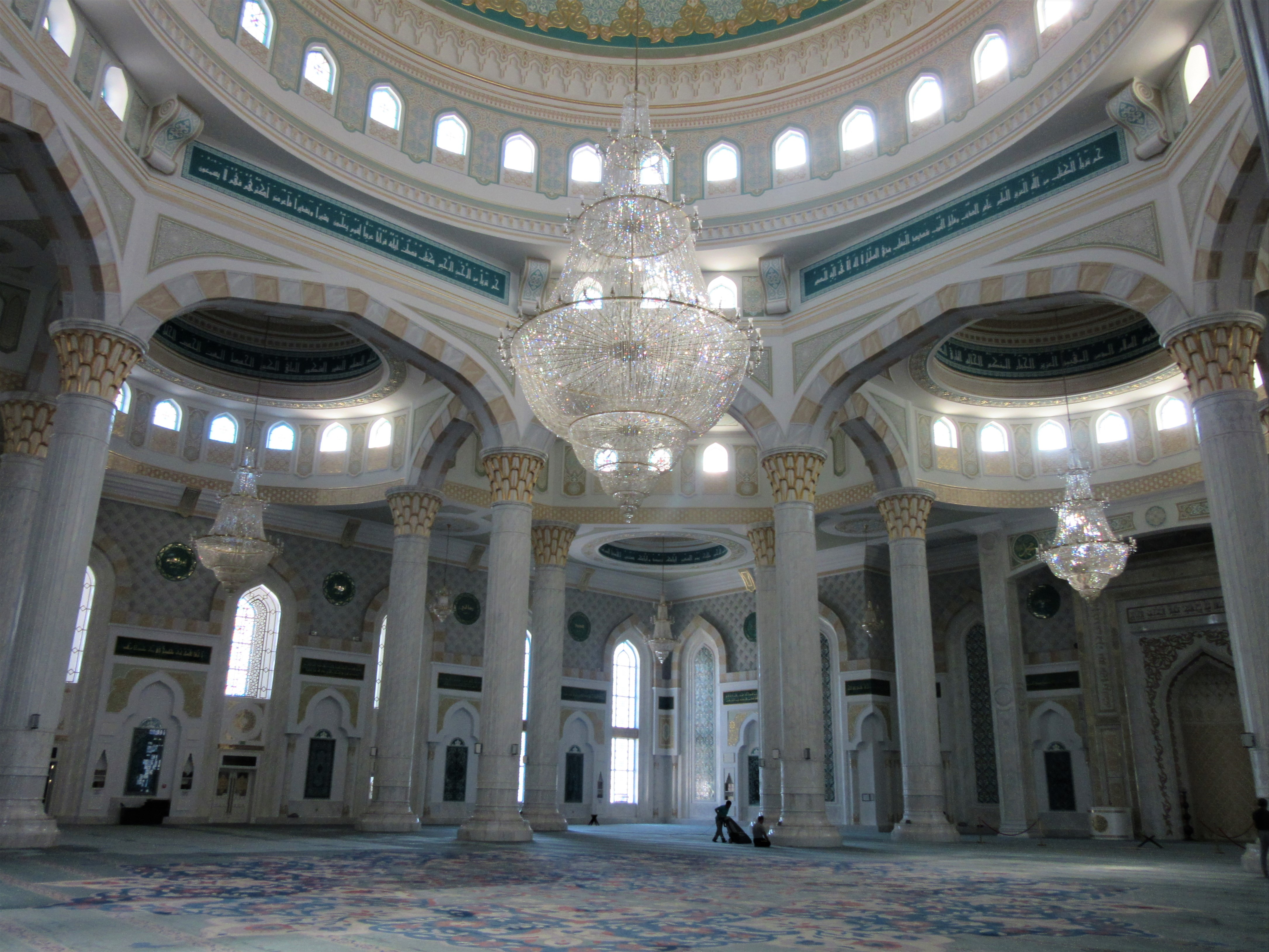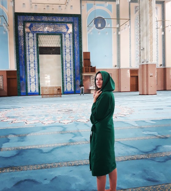Przyznaję, że było to jedyne miejsce w całym Kazachstanie, w którym poczułam się nieswojo. Mimo tego, że miałyśmy na sobie długie szaty i zasłonięte włosy, to mężczyźni modlący się tam patrzyli na nas groźnie, a wręcz wrogo. Fakt, że nie miałyśmy pojęcia, że sala dla kobiet znajdowała się na górze, ale razem z nami było kilka innych zagubionych kobiecych duszyczek i tylko na nas patrzyli się w taki sposób. Niesmak pozostał i miałyśmy obawy, żeby pójść do innego meczetu znajdującego się w Astanie, który moim zdaniem jest nie tylko większy, ale przede wszystkim bardziej interesujący.