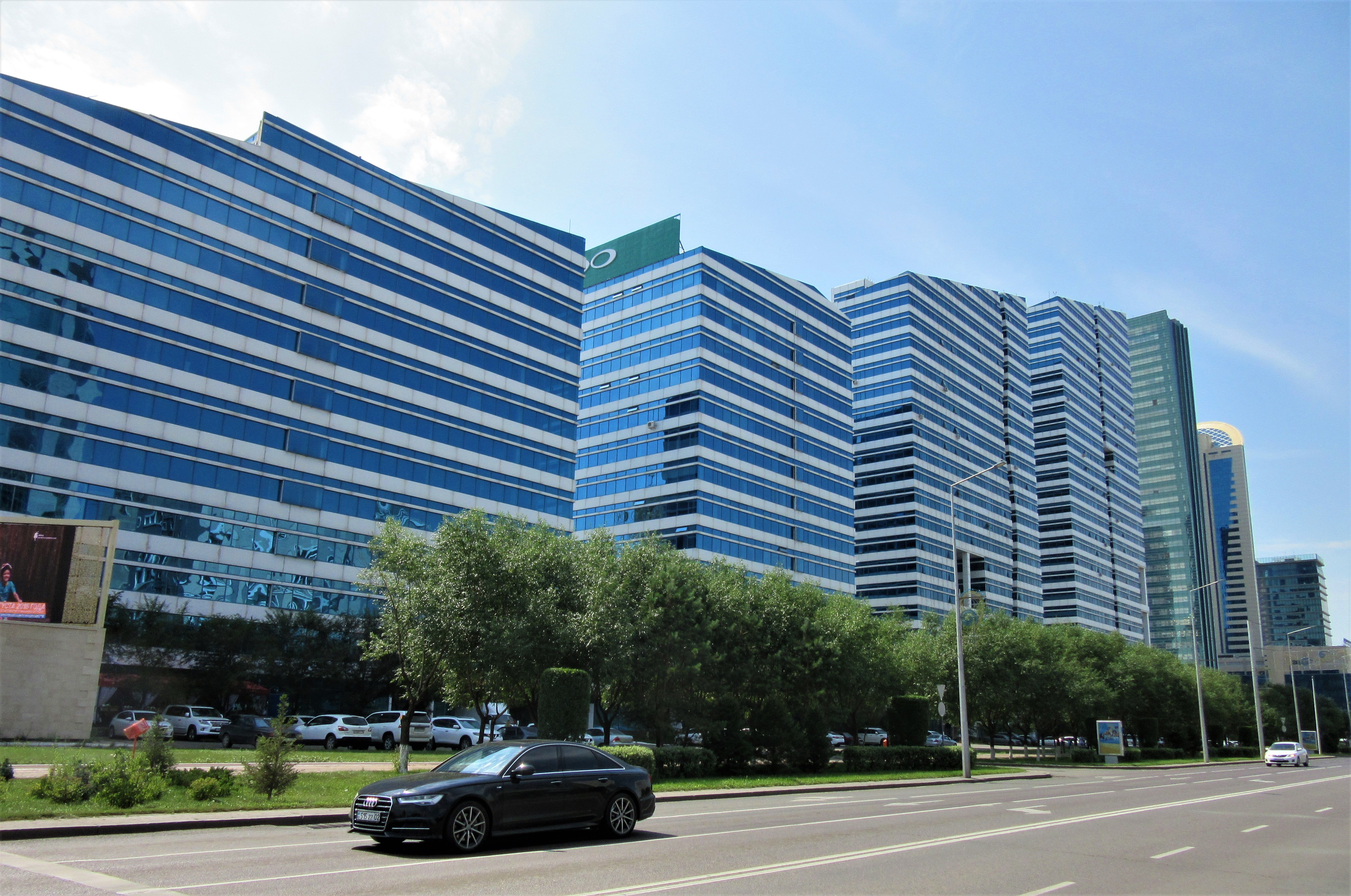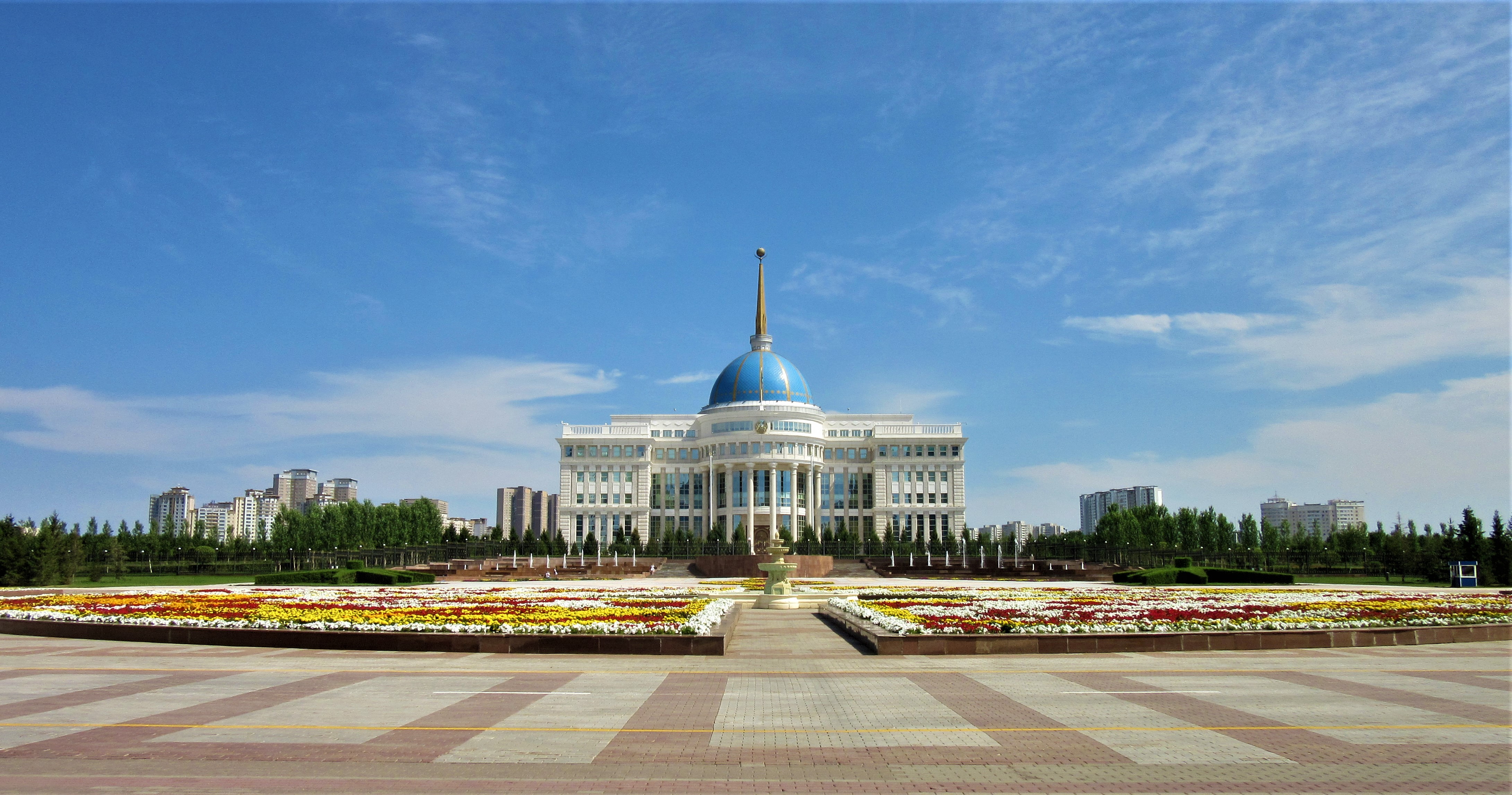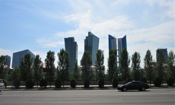 Nieopodal, czyli jakaś 1-1,5 godziny spaceru (a tak naprawdę tylko dwie przecznice) znajduje się rezydencja ich ukochanego prezydenta Nazarbajewa, Ak-Orda oraz siedziba ministerstw. Pośród nich jest wyróżniający się swa długością, ponad kilometrowy budynek, w którym mieszczą się wszystkie ministerstwa Kazachstanu.