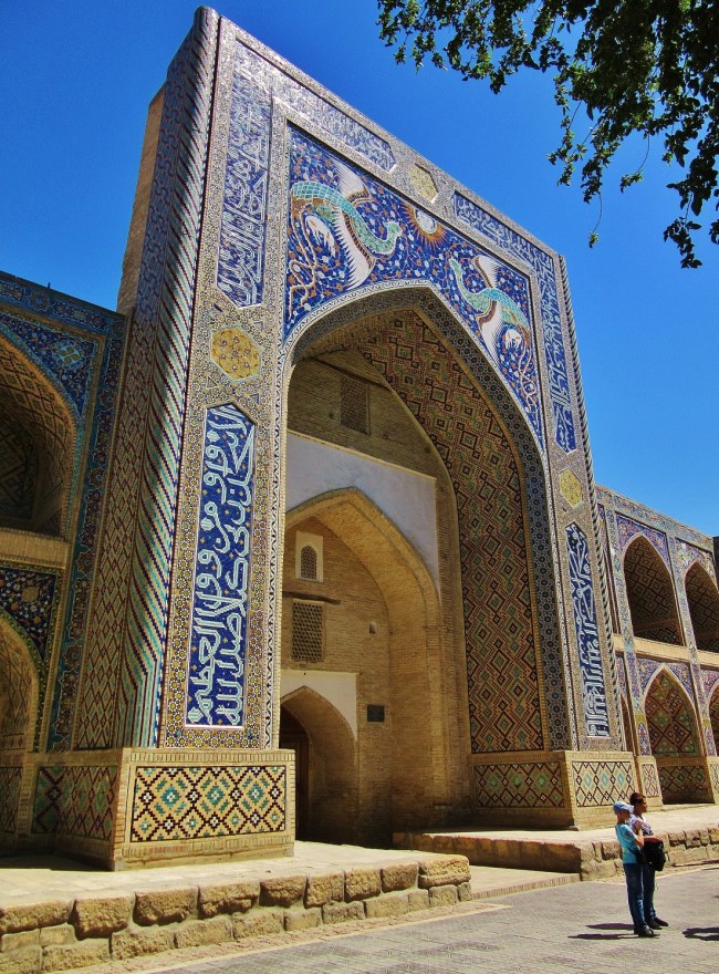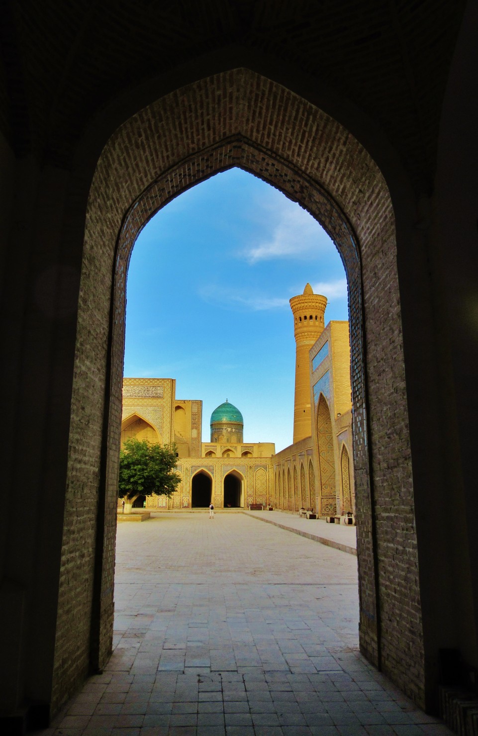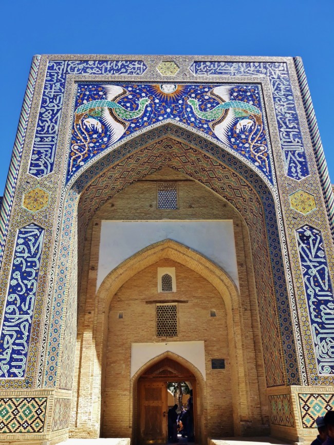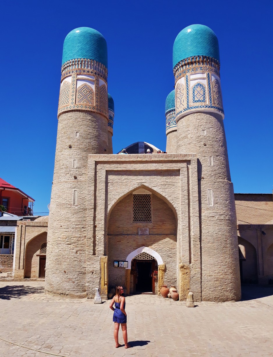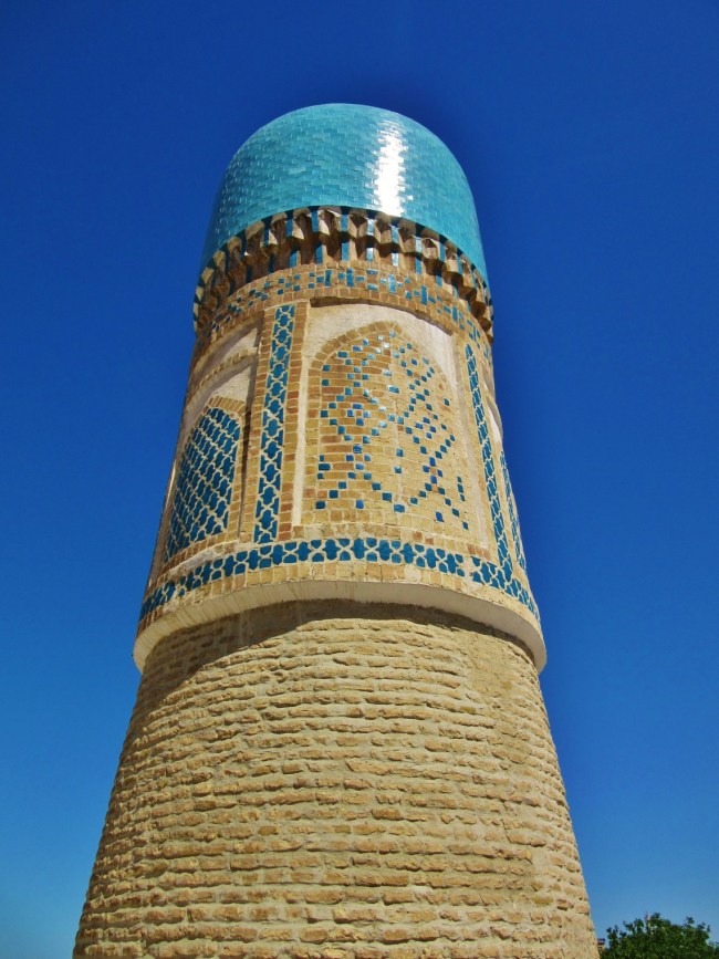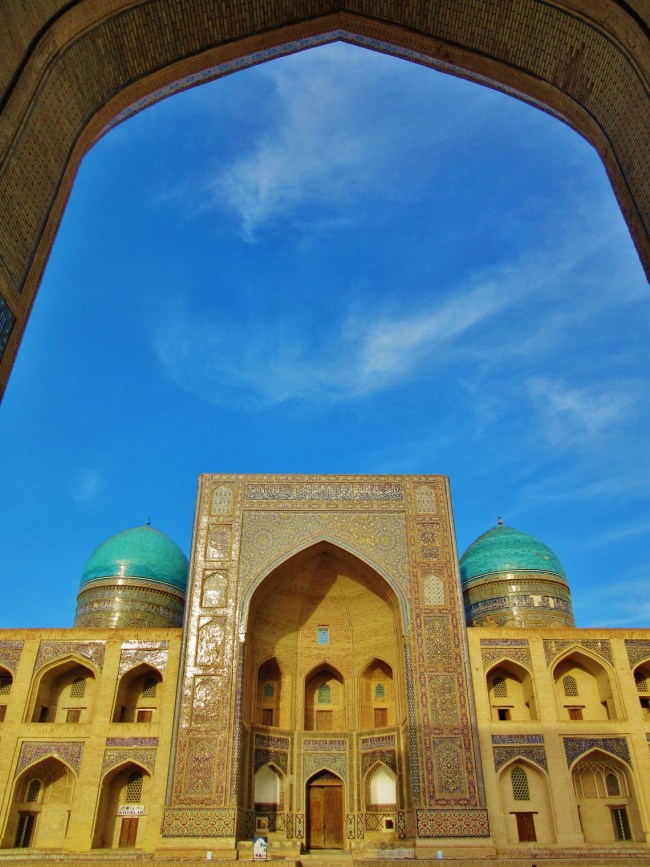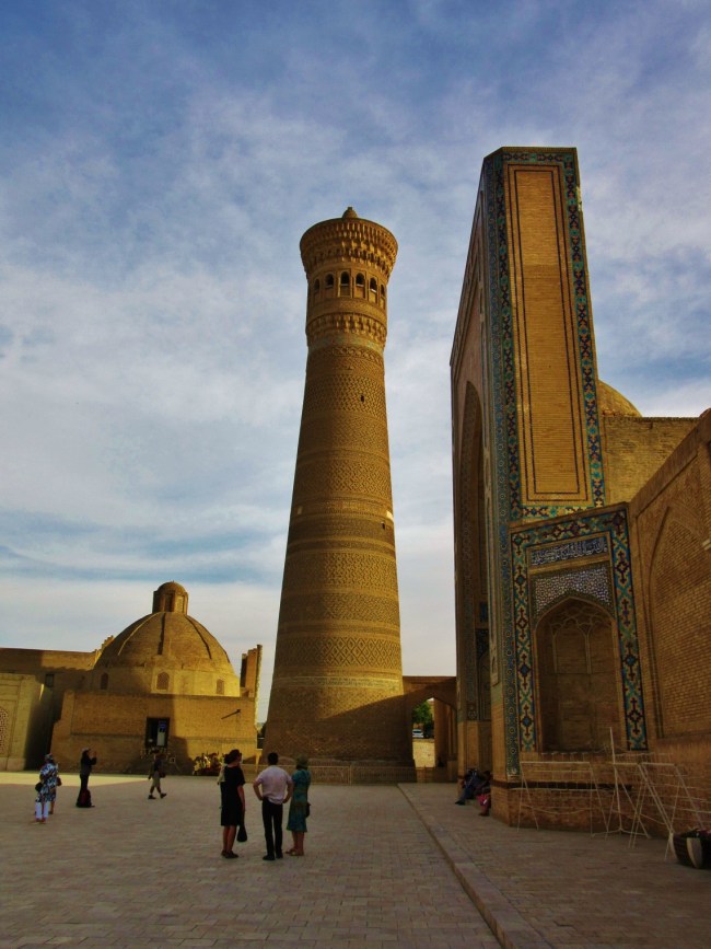 Jednym z najpiękniejszych miejsc w Bucharze jest wspomniany wcześniej kompleks Po-i Kolon, czyli najbardziej charakterystyczny plac, który wytaczają ustawione frontami do siebie medresa Mir-i Arab oraz meczet Kalon, z górującym nad nimi minaretem Kalon o wysokości 47 m. Ciekawostka jest, że swego czasu był on najwyższą budowlą w całej Azji Środkowej i pełnił funkcję swego rodzaju drogowskazu dla karawan przemierzających Jedwabny Szlak. Jak dla mnie to najpiękniejsze miejsce w całej Bucharze.