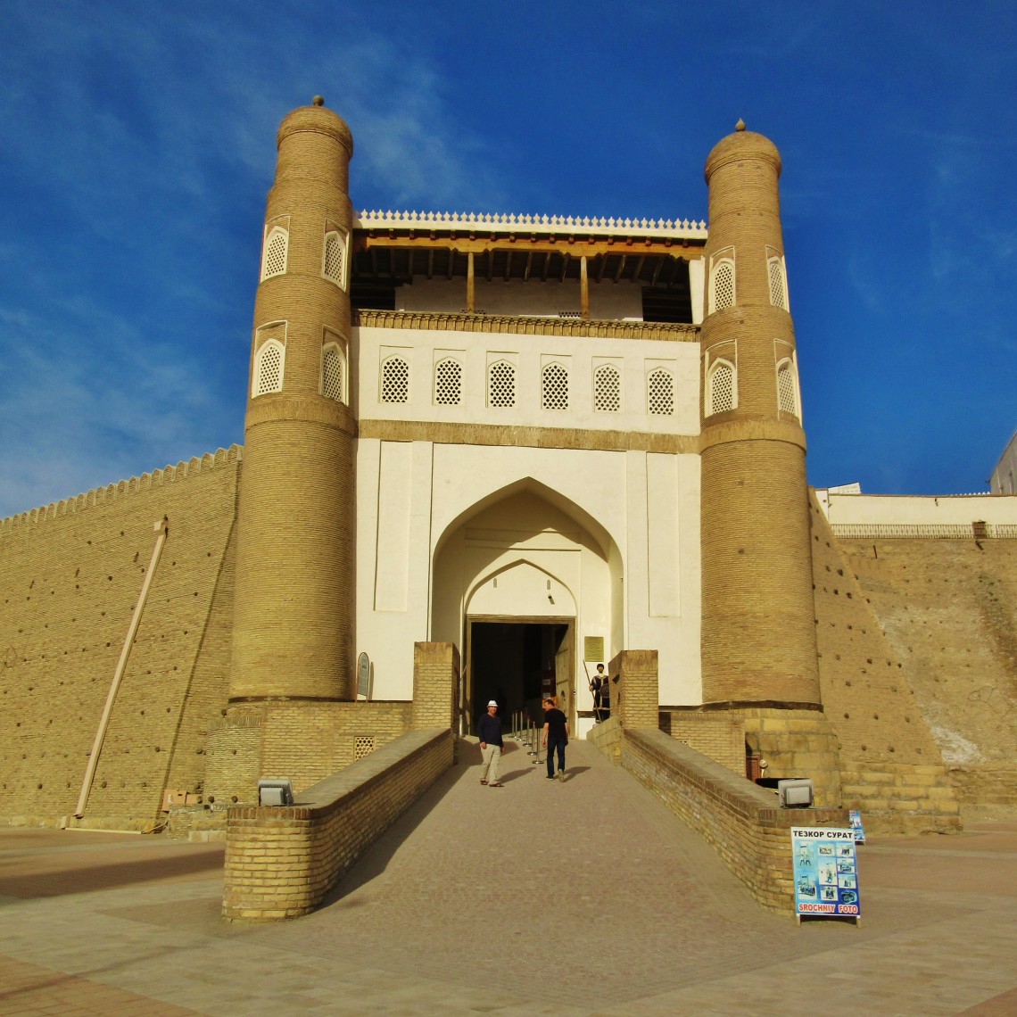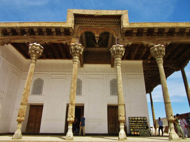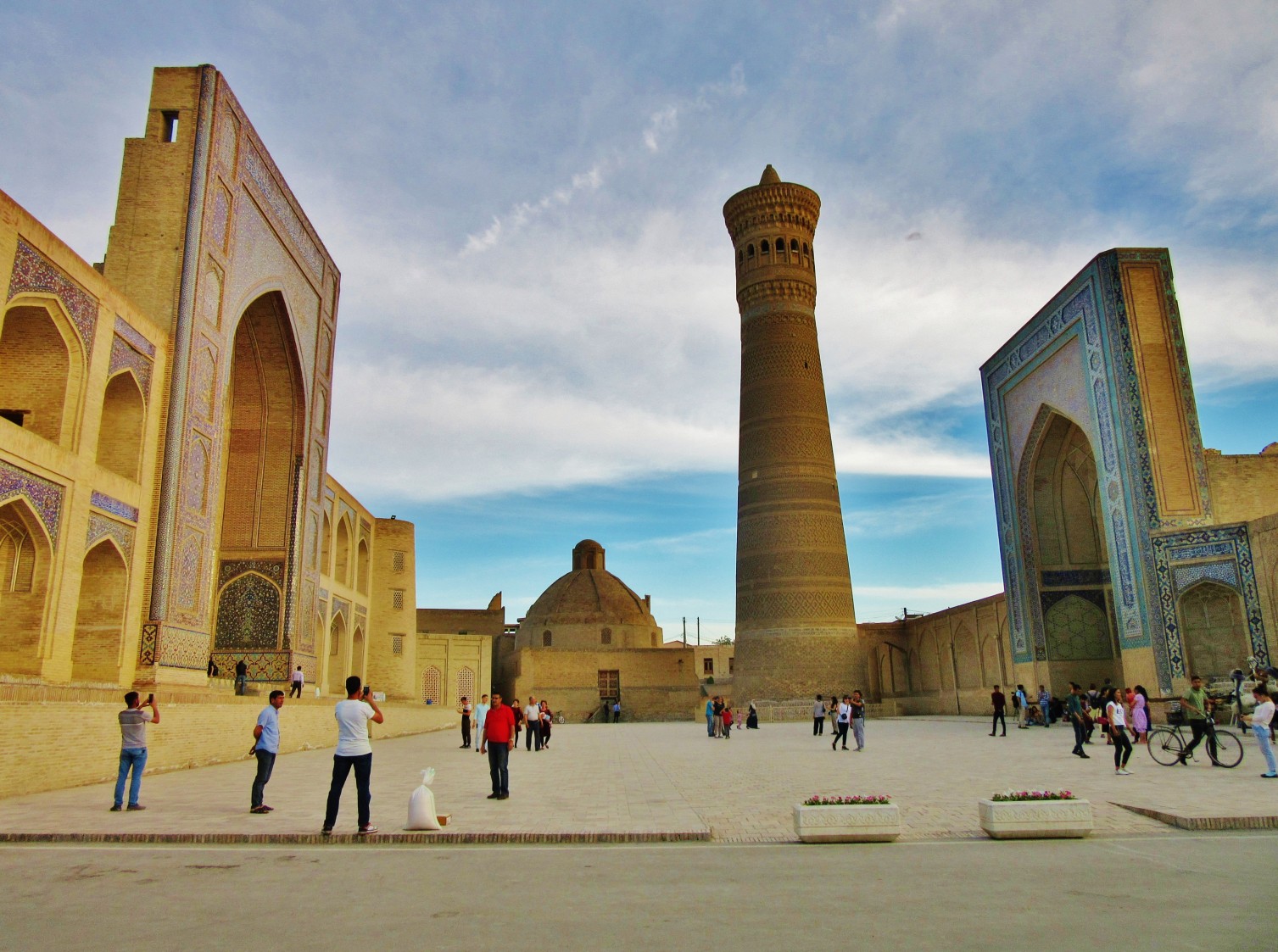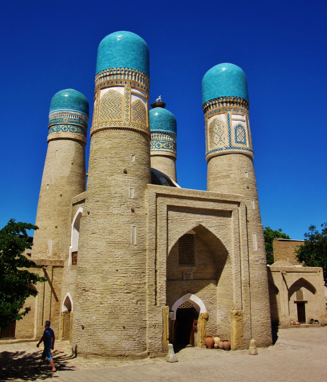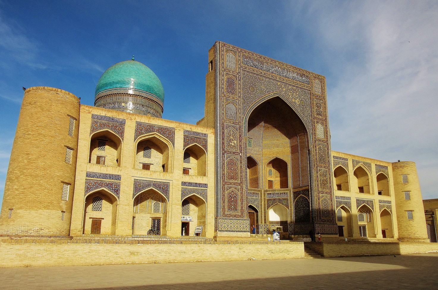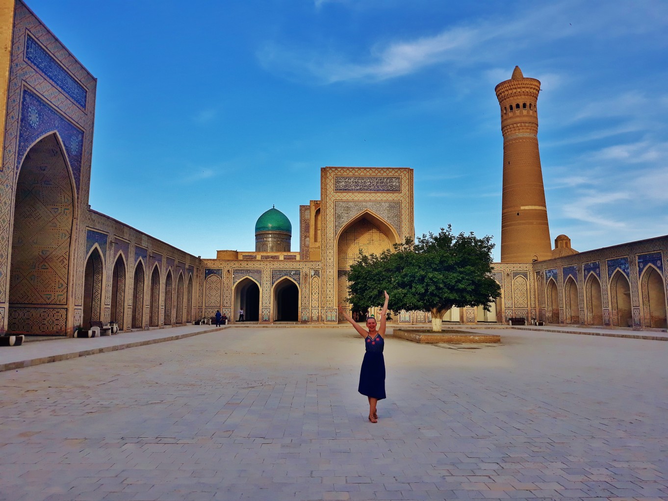 Jednym z najpiękniejszych miejsc w Bucharze jest wspomniany wcześniej kompleks Po-i Kolon, czyli najbardziej charakterystyczny plac, który wytaczają ustawione frontami do siebie medresa Mir-i Arab oraz meczet Kalon, z górującym nad nimi minaretem Kalon o wysokości 47 m. Ciekawostka jest, że swego czasu był on najwyższą budowlą w całej Azji Środkowej i pełnił funkcję swego rodzaju drogowskazu dla karawan przemierzających Jedwabny Szlak. Jak dla mnie to najpiękniejsze miejsce w całej Bucharze.
