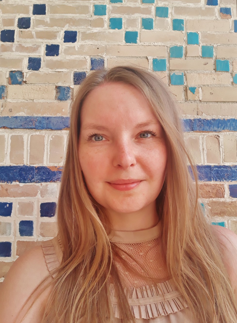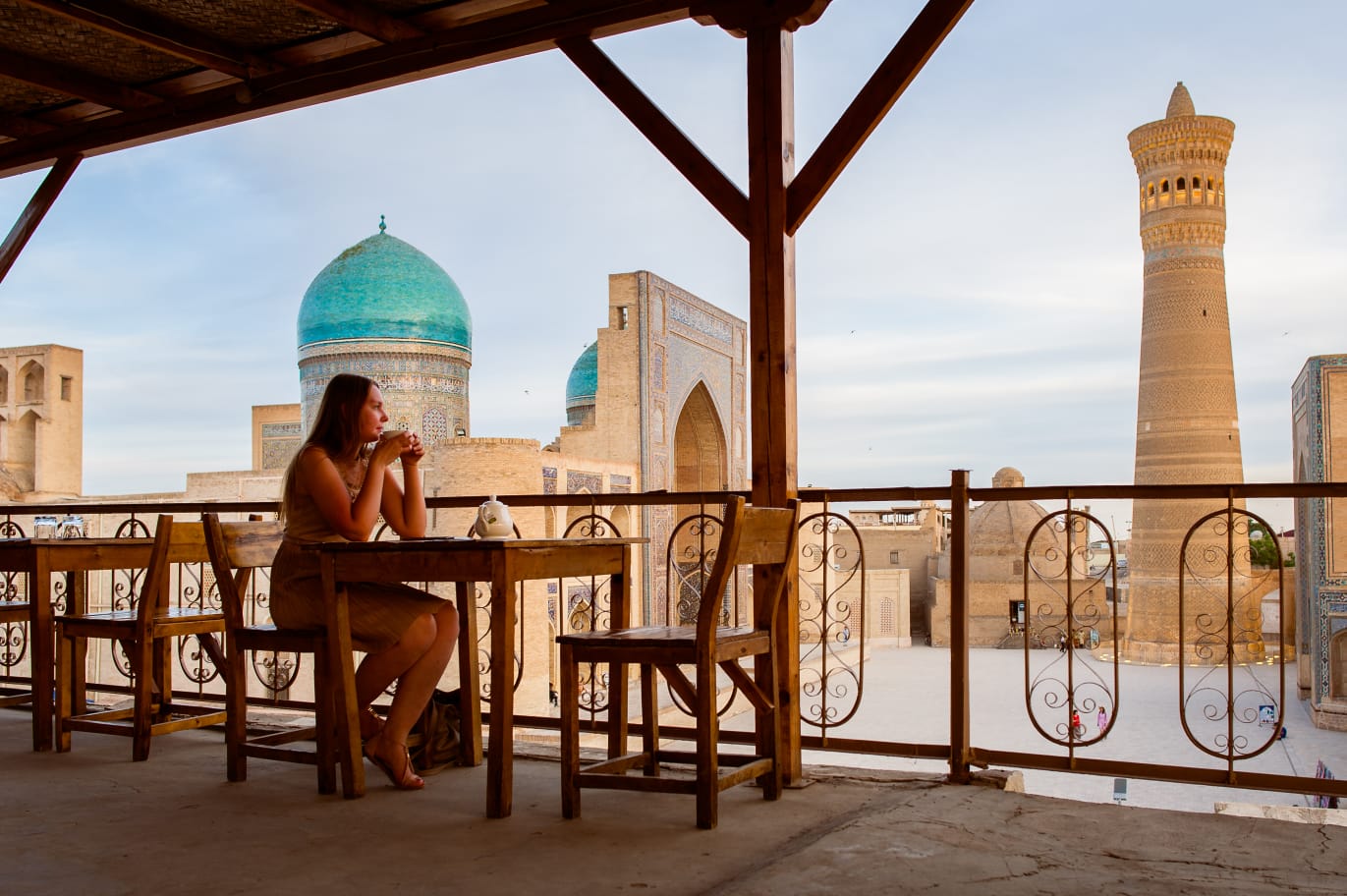 Siedziałam na tarasie restauracji, popijając aromatyczną uzbecką herbatę i rozkoszując się widokiem Po-i Kalon, rozświetlonego złotymi promieniami zachodzącego słońca, gdy nagle zjawił się on. Przepraszając nieśmiało zapytał, czy może zrobić mi zdjęcie, bo moja sukienka, uroda i ogólnie ten moment idealnie wtapiają się w tło. Rzadko zgadzam się, by ktoś obcy robił mi zdjęcia na własny użytek, ale biła od niego jakaś szczerość i wzbudził moje zaufanie. Zgodziłam się. Efektem naszego spotkania jest to zdjęcie.