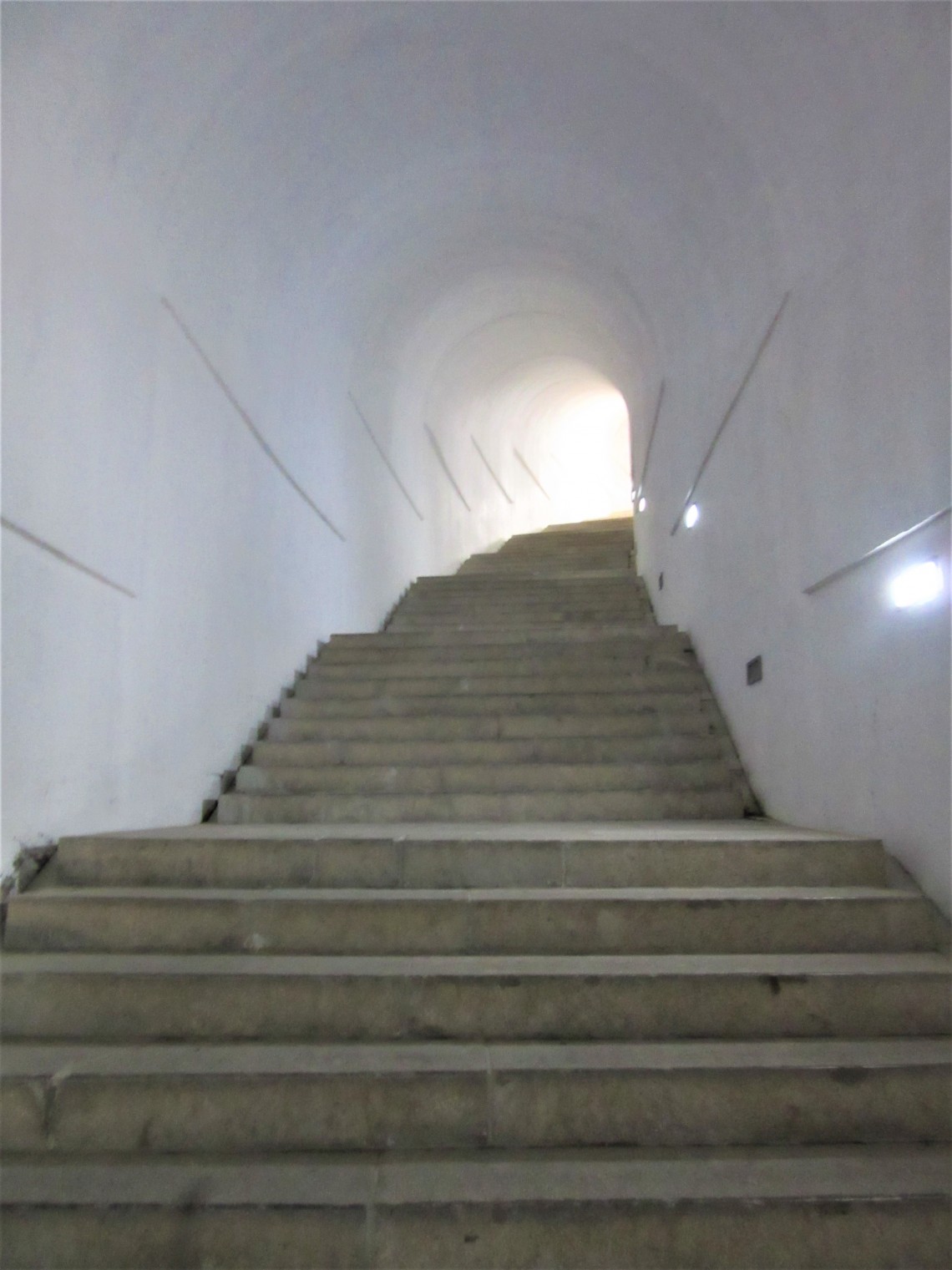 By dostać się do mauzoleum, trzeba pokonać tunel z 461 kamiennymi schodami. Wchodzi się łatwo i wygodnie, w cieniu i lekkim przeciągu, co latem przy promieniach czarnogórskiego słońca jest szalenie istotne. Zbudowano je w latach 1951-1974 roku. Tunel prowadzi wprost do mauzoleum, przed którym stoją dwa ogromne pomniki czarnogórskich kobiet. Wewnątrz znajduje się ogromny posąg Niegosza, a za nim mała krypta usłana „złotem”, z prostym sarkofagiem pośrodku.