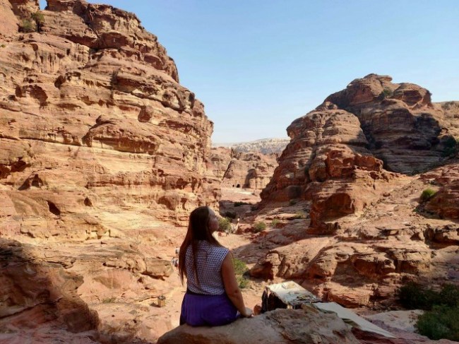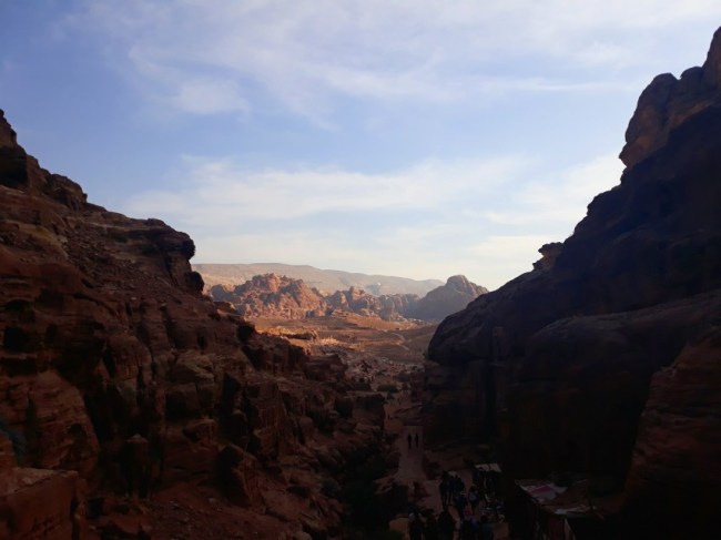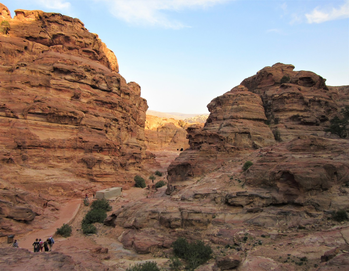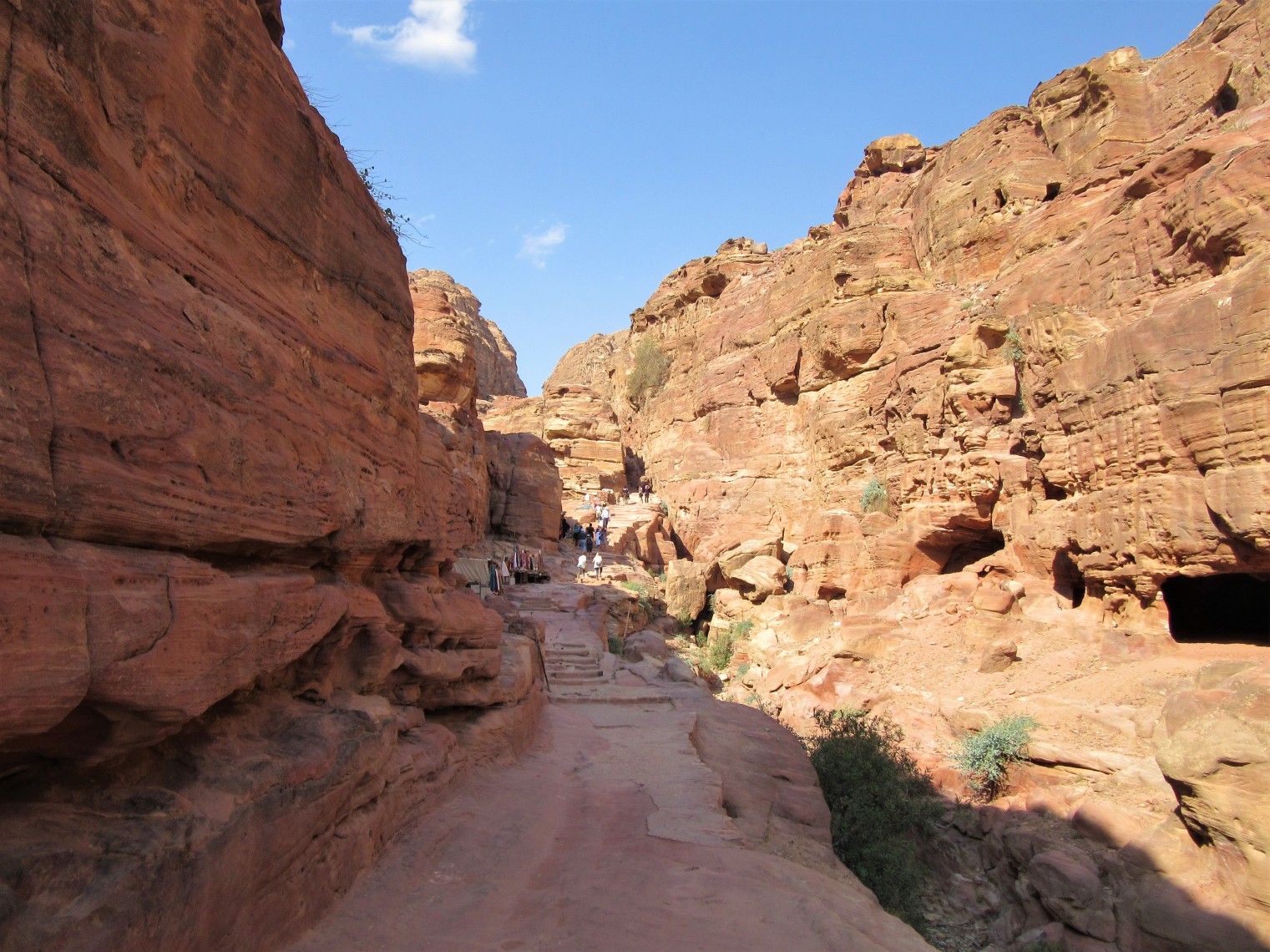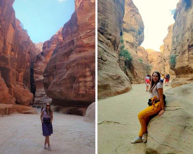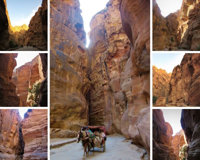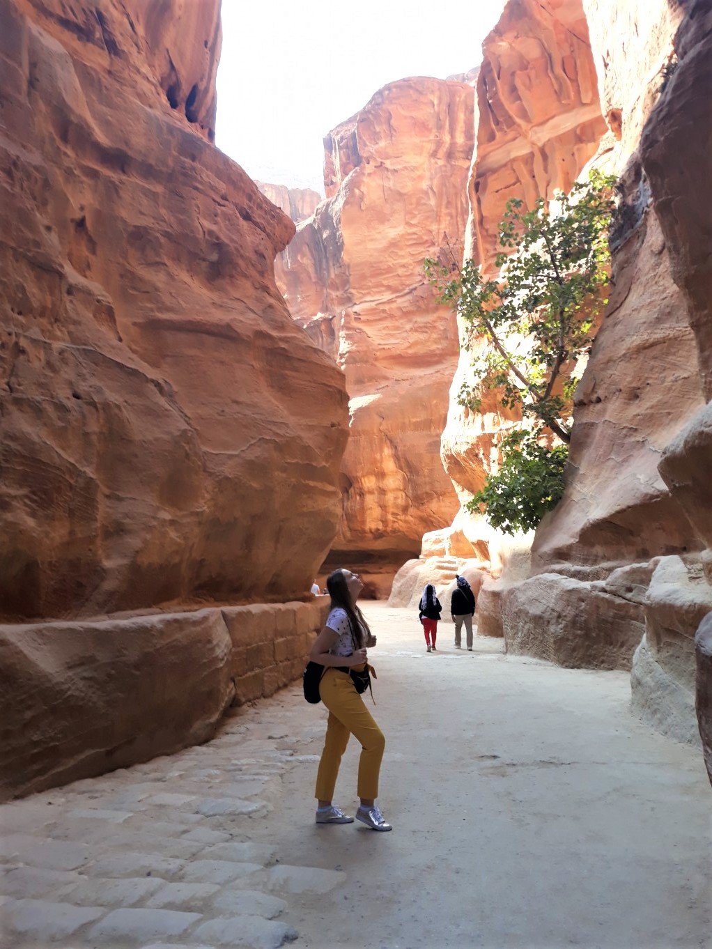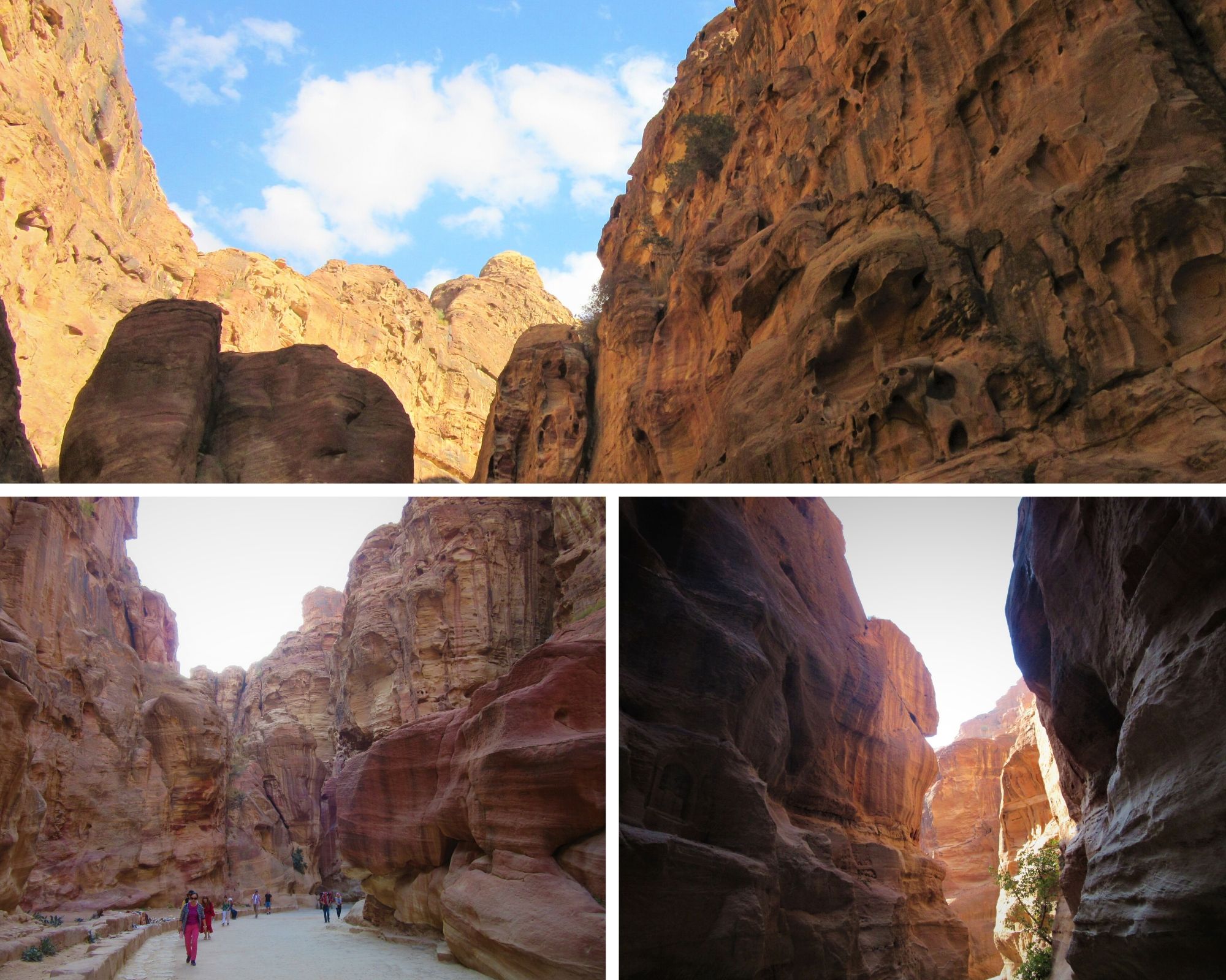 Idąc dalej, wchodzimy w spektakularny i zapierający dech wąwóz Siq, który ciągnie się przez ponad 1 km. To właśnie tędy przed wiekami wiodła ceremonialna droga do miasta. Wąwóz głęboki jest na ponad 100 m, o szerokości miejscami nieprzekraczającej 3 m. Ta skalna szczelina wbrew pozorom nie powstała przez płynącą tędy wodę – to tektoniczna rozpadlina, która jedynie została pogłębiona przez erozję wodną. Spacer wzdłuż tego kanionu, pośród wijących się alejek jest niesamowitym przeżyciem. Zaskakująca jest barwa skał oraz całkiem bujna roślinność.