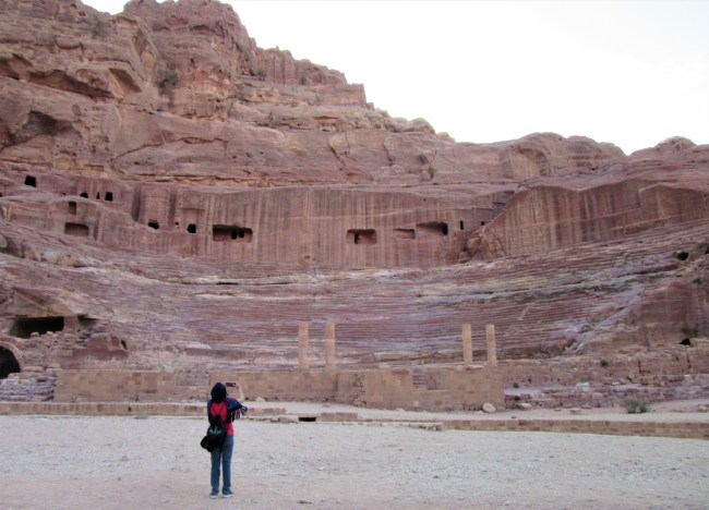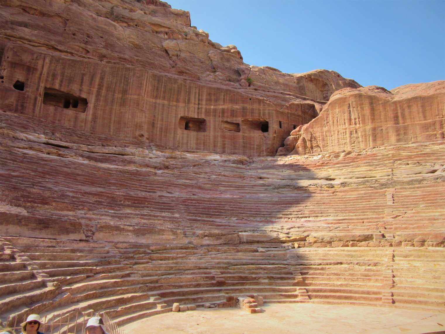 Idąc kawałek dalej od Skarbca, dojdziemy do wykutego w skale w I w. p.n.e. teatru. Kryjąca się u zboczy gór arena widowiskowa mogła pomieścić 4 tysiące widzów! W późniejszych wiekach został on rozbudowany przez Rzymian, którzy podbili miasto. Co ciekawe, teatr ten jest jedyną tego typu areną na świecie, który został wykuty w skale.
