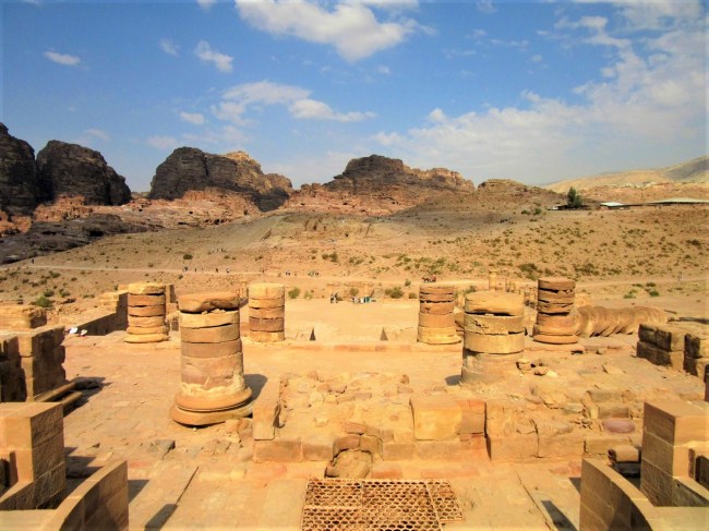 Idąc ulicą kolumnową, po lewej stronie znajdują się majestatyczne pozostałości Wielkiej Świątyni, która reprezentuje jedną z najważniejszych architektonicznych i archeologicznych zabytków centralnej Petry. Znajduje się na obszarze 7 tysięcy metrów kwadratowych, wliczając południowe i północne wejścia oraz dolny i górny poziom Świątyni. Jej wysokość w przybliżeniu wynosi 15 metrów. Nabatejczycy lubili mieszać swój własny styl architektoniczny z duchem antycznego klasycyzmu, co doskonale przekłada się na unikatowość Wielkiej Świątyni.