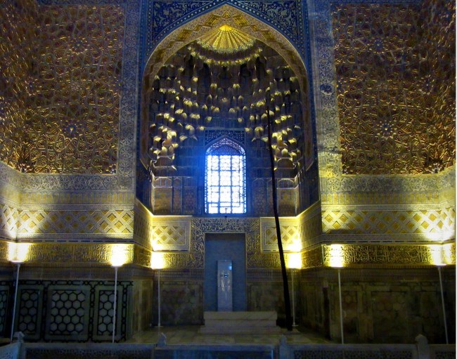 Nazwa tego mauzoleum dosłownie oznacza „grób króla”, a w tym miejscu pochowano Timura Chromego – jedną z najważniejszych postaci historycznych Uzbekistanu. Początkowo mauzoleum było przeznaczone dla ulubionego wnuka Timura, Muhammada Sułtana (sam Timur zawsze chciał być pochowany w Shahrisabzie), ale to właśnie Samarkanda została uznana za bardziej odpowiednie miejsce ostatniego spoczynku wielkiego wodza. Obok Timura pochowano tu z czasem jego synów: Szach Ruch i Miranszch, a także wnuków: Muhammad Sułtan i Uług Beg. Głównym elementem zewnętrznej konstrukcji jest portal i charakterystyczna, turkusowa kopuła nad centralną, ośmioboczną salą.