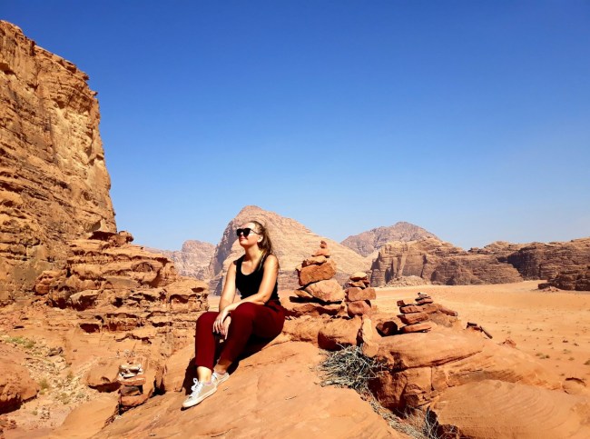 Mówią, że Wadi Rum robi bardziej spektakularne wrażenie od samej Petry i najlepiej spędzić tam co najmniej 3 dni, z czym ja pozwolę się nie zgodzić. Byłoby okrutnym kłamstwem, gdybym powiedziała, że pustynia mnie nie urzekła, ale jednak Petra pozostaje dla mnie numerem 1. Poza tym, po całym dniu jeżdżenia rozklekotanym jeepem po czerwonym piasku i wspinaniu się po skałach stwierdzam, że pod koniec dnia każdy następny głaz i kamień nie różnił się od poprzednich. Co więcej – nawet zdjęć nie chciało mi się robić, a to już nie było dobrą oznaką. Według mnie jeden cały dzień na pustyni z noclegiem jest optymalną opcją na spędzenie czasu na Wadi Rum.