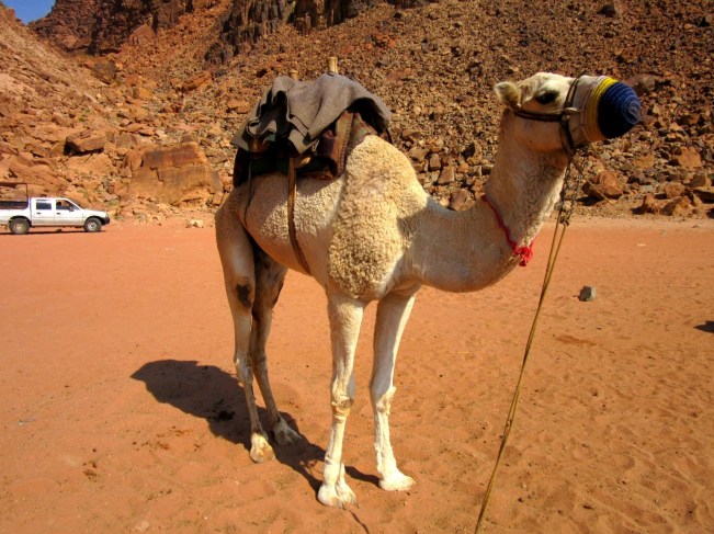 • strój – jeśli chcecie uniknąć poparzenia słonecznego (ja byłam tam w listopadzie, a po całym dniu na pustyni byłam cała czerwona – nie dało się tego uniknąć), to ubierzcie długie spodnie, t-shirt i koniecznie jakąś zwiewną koszulę do ochrony przed słońcem. Po drugie – dziewczyny – jeśli nie chcecie być zaczepiane przez Beduinów, to lepiej unikajcie szortów. Ja miałam długie spodnie, a mimo to kilka razy otrzymałam ofertę matrymonialną. No i zrezygnujcie z białych ubrań, bo po powrocie z pustyni będą miały kolor miedziano-pomarańczowy.