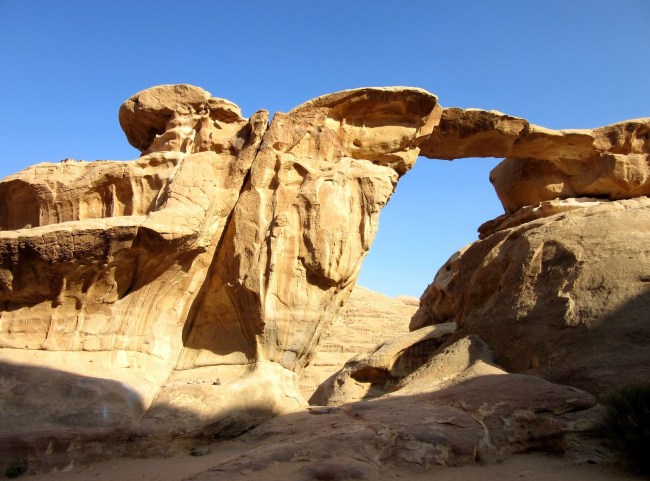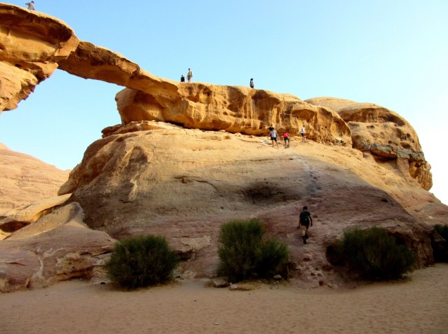 Niedaleko kanionu Khazali znajduje się masyw skalny, na grzbiecie którego znajduje się najmniejszy z naturalnych skalnych mostów w Wadi Rum, zwany Małym Mostem. Sam most nie robi tak wielkiego wrażenia, ale widoki z niego są powalające. W pewnym momencie zaczęło tak mocno wiać, że Beduini zabronili nam po nim chodzić.