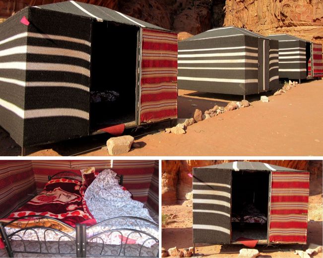 Pustynia Wadi Rum kryje w sobie nie tylko miliony ton miedzianego piasku i piękne formacje skalne, ale także mnóstwo tzw. campów. Generalnie standard jest do siebie zbliżony, ale jest kilka dosłownie kosmicznych beduińskich namiotów. Do wyboru, do koloru. My nie zdecydowałyśmy się na jakąś super ekskluzywną opcję noclegową, bo po prostu uważam to za zbędny wydatek. Nasz camp był bardzo przyzwoity, mieliśmy własne namioty z wygodnymi łóżkami, a nawet znajdowała się łazienka z prysznicem  (bez ciepłej wody, ale to nie przeszkadzało) w murowanym budyneczku, natomiast jedzenie było przepyszne.