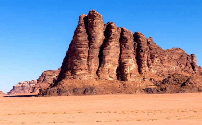 Nieco dalej nad równinnym dnem doliny wyrasta ogromna formacja skalna w kształcie siedmiu coraz wyższych kolumn zwana Siedmioma Filarami Mądrości. Jej nazwa pochodzi od tytułu autobiograficznej książki Thomasa Lawrence’a.