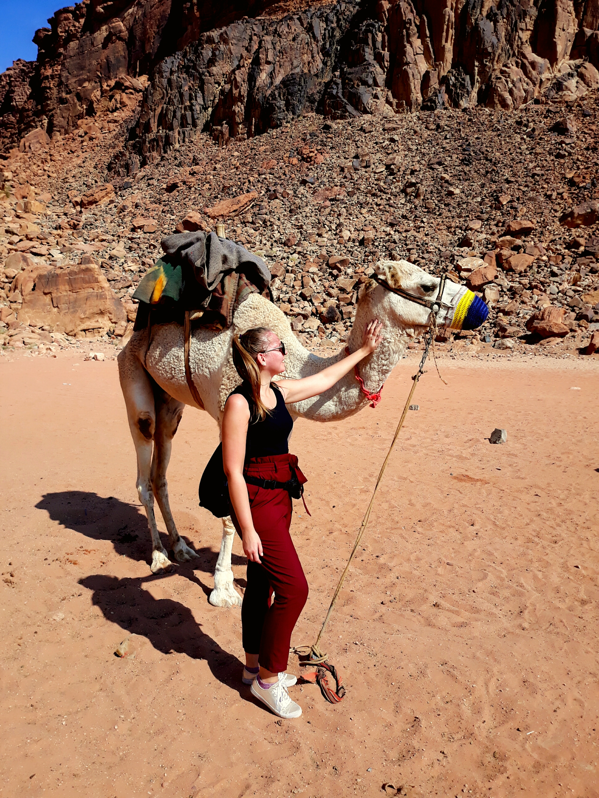 • strój – jeśli chcecie uniknąć poparzenia słonecznego (ja byłam tam w listopadzie, a po całym dniu na pustyni byłam cała czerwona – nie dało się tego uniknąć), to ubierzcie długie spodnie, t-shirt i koniecznie jakąś zwiewną koszulę do ochrony przed słońcem. Po drugie – dziewczyny – jeśli nie chcecie być zaczepiane przez Beduinów, to lepiej unikajcie szortów. Ja miałam długie spodnie, a mimo to kilka razy otrzymałam ofertę matrymonialną. No i zrezygnujcie z białych ubrań, bo po powrocie z pustyni będą miały kolor miedziano-pomarańczowy.