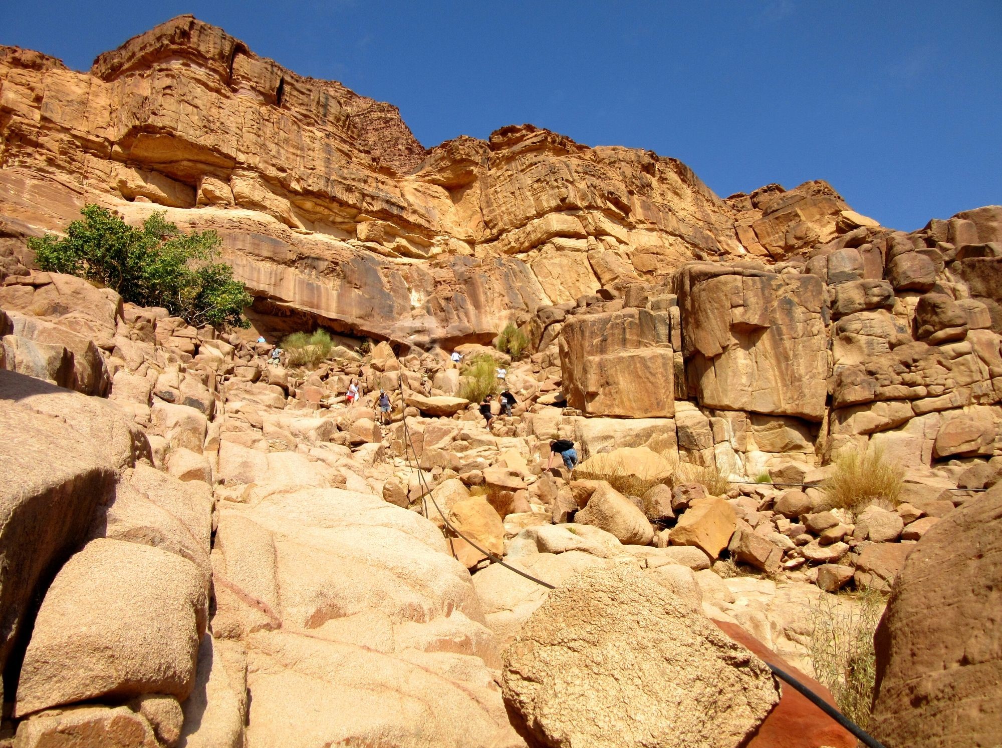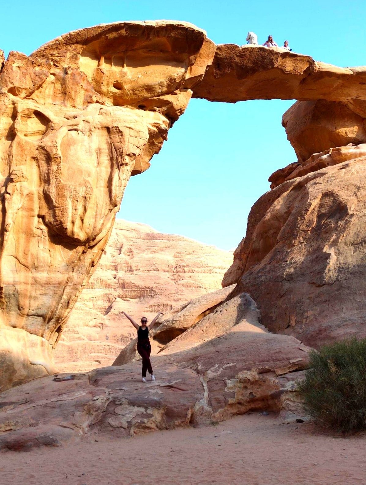 Hilal dbał, żebyśmy się przypadkiem nie nudzili. Następnym punktem wycieczki był piękny, naturalny skalny most Umm Fruth. Most robił ogromne wrażenie, ale droga do niego już nie za bardzo – prostopadłe wejście po skale z lekko wyżłopanymi „schodkami. Oczywiście ci odważniejsi weszli po tej pionowej ścianie, ale ja nie chciałam ryzykować. Potem stwierdziłam, że jednak dałabym radę, no ale trudno się mówi.