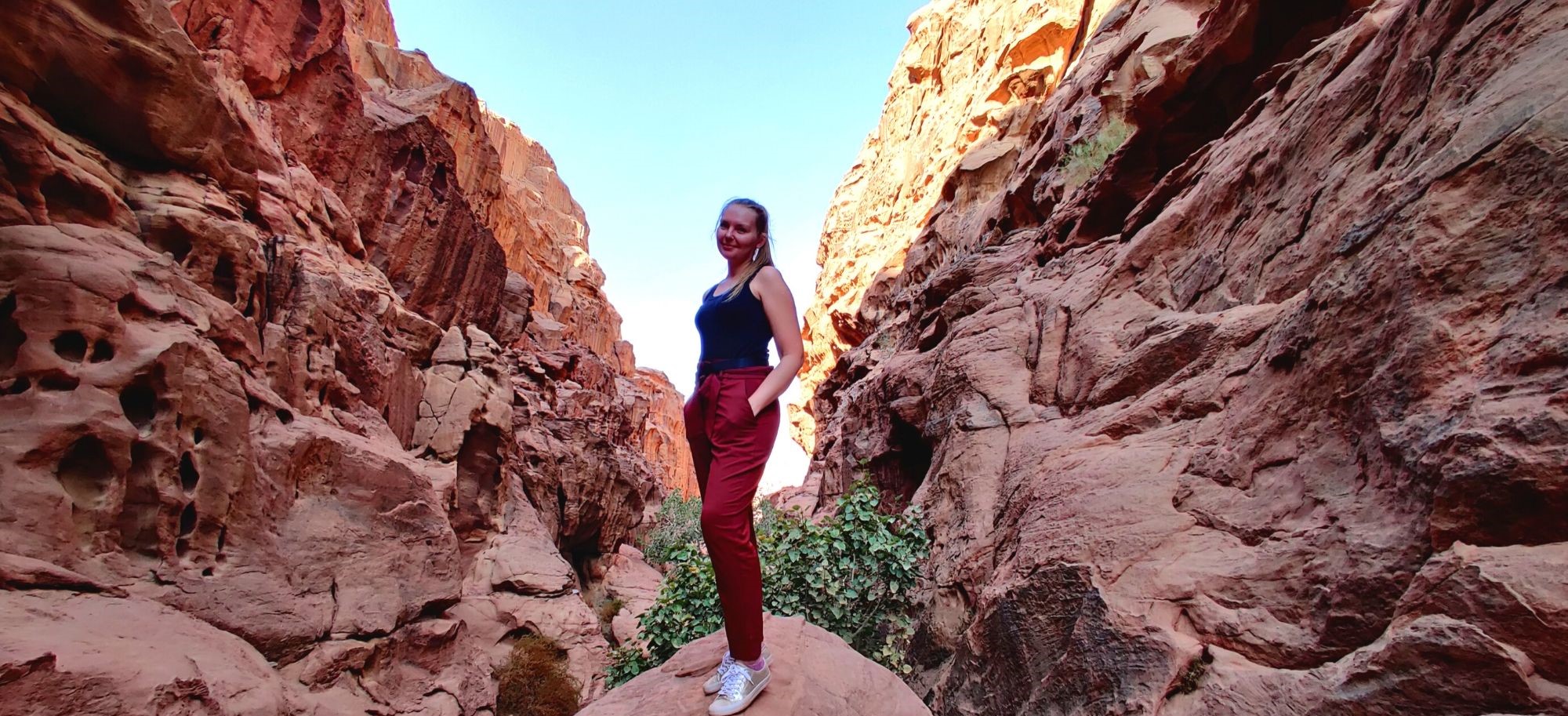 Mówią, że Wadi Rum robi bardziej spektakularne wrażenie od samej Petry i najlepiej spędzić tam co najmniej 3 dni, z czym ja pozwolę się nie zgodzić. Byłoby okrutnym kłamstwem, gdybym powiedziała, że pustynia mnie nie urzekła, ale jednak Petra pozostaje dla mnie numerem 1. Poza tym, po całym dniu jeżdżenia rozklekotanym jeepem po czerwonym piasku i wspinaniu się po skałach stwierdzam, że pod koniec dnia każdy następny głaz i kamień nie różnił się od poprzednich. Co więcej – nawet zdjęć nie chciało mi się robić, a to już nie było dobrą oznaką. Według mnie jeden cały dzień na pustyni z noclegiem jest optymalną opcją na spędzenie czasu na Wadi Rum.