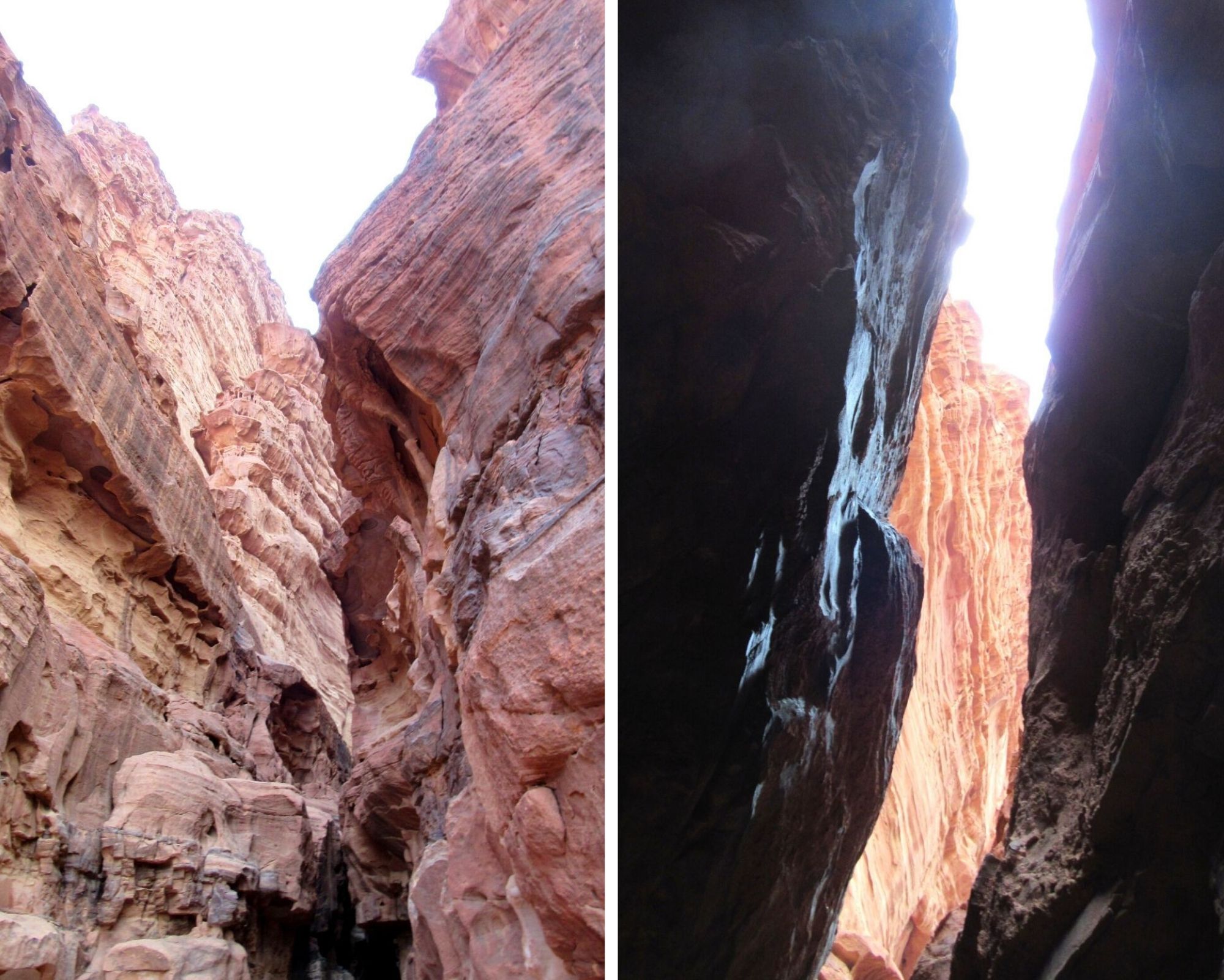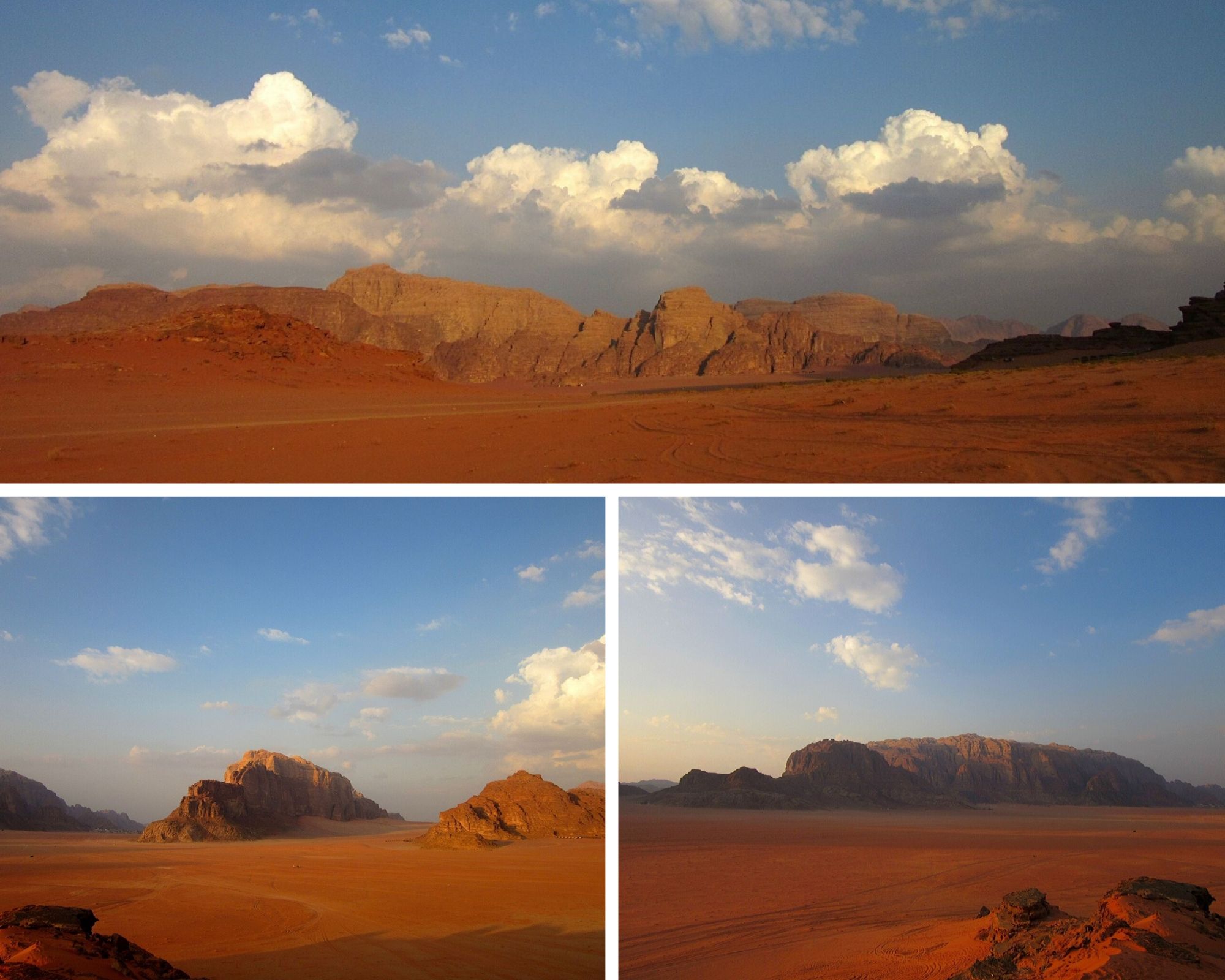 To był mój pierwszy raz na pustyni. Czy tak go sobie wyobrażałam? Chyba nie. Po pierwsze kolor piasku był nietypowy (czyli inny niż na filmach), chociaż byłam na to przygotowana. Miedziano-pomarańczowa barwa sprawiała wrażenie jakbyśmy wylądowaliśmy na Marsie. I nie byłoby to wcale kłamstwem, bo widoki były iście kosmiczne. Wydawało mi się, że po intensywnym dniu w Petrze, zasiądę na pace swojego jeepa i jak rasowa damulka będę podziwiać piękno pustynnego krajobrazu, a jedynym wysiłkiem miało być robienie zdjęć. No cóż, rzeczywistość szybko sprowadziła mnie na ziemię, bo już na pierwszym przystanku poprzeczka została wysoko postawiona. Potem było coraz ciekawiej. Tak jak wtedy sądziłam, że wspinaczka na wzgórze do Monastyru była ekstremalna, to muszę sprostować swoje zeznania – Petra przy Wadi Rum to pikuś. Dawno nie miałam takich zakwasów jak po wizycie na tej pustyni. Zaś w nocy zamiast podziwiania rozgwieżdżonego nieba, obserwowaliśmy gromadzące się chmury, by w końcu podający deszcz rozgonił nas do swoich namiotów. Beduini mówili, że opady zdarzają się tylko kilka razy w ciągu roku. Tak, pierwszy raz na pustyni i musiałyśmy trafić na deszcz… No cóż, taka karma.