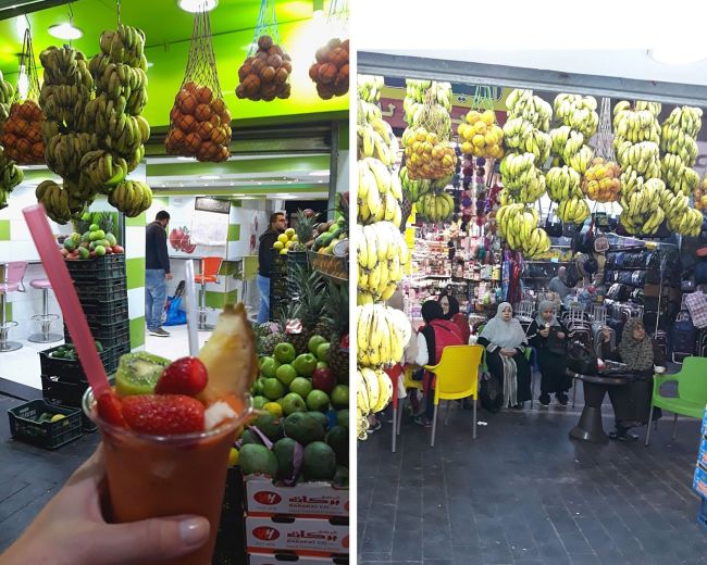 No dobrze, żeby nie było – gdzieniegdzie w Ammanie pojawiają się jakieś kolory i przyjemniejsze miejsca. Samo centrum miasta to zbiorowisko licznych sklepów z pamiątkami, przepięknymi tradycyjnymi strojami oraz całą masą street foodów. Na straganach można kupić kosmetyki z minerałami z Morza Martwego, lokalne przysmaki, przyprawy, rękodzieło czy spróbować miejscowych smakołyków, np. słynną kuftę.