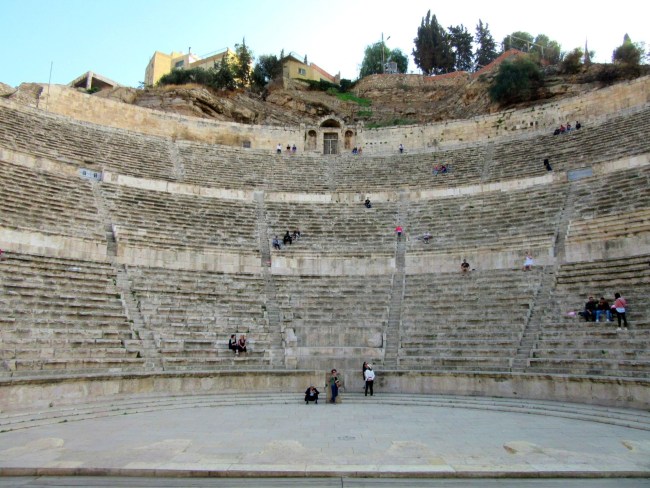To chyba najbardziej znana zabytkowa budowla Ammanu, która jest doskonale zachowana i robi wrażenie. Obiekt prawdopodobnie powstał za czasów Marka Aureliusza. Leży u podnóża cytadeli i jest dobrze widoczny z jej szczytu. Jego obecny wygląd to efekt rekonstrukcji podjętej w latach 50-tych ubiegłego wieku. Odsłonięto wtedy widownię przysypaną gruzem i pyłem, ale także odtworzono znaczne fragmenty oraz część proscenium. Warunki terenowe pozwoliły, by widownię wykuto w skałach stromego zbocza doliny. Mogło tu zasiąść co najmniej 6 tysięcy widzów, najzamożniejsi mieli miejsce w dolnych rzędach, a górne zajmowali biedniejsi. Niegdyś u stóp teatru znajdowała się niewielka świątynia, w której odkryto fragment posągu bogini Ateny, który obecnie przechowywany jest w Muzeum Jordańskim.