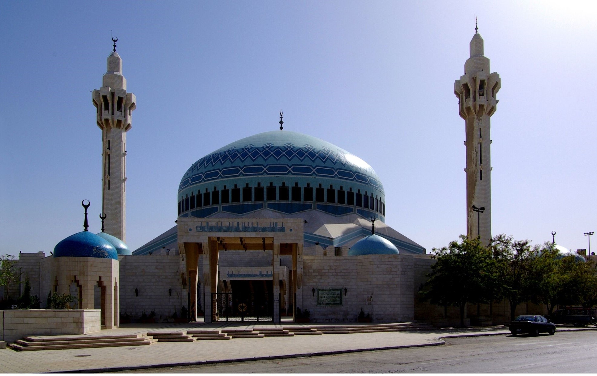 Ten ogromny dom modlitwy muzułmanów upamiętnia pierwszego króla Jordanii, Abdullaha. Wyróżnia go błękitna kopuła o średnicy 35 m, zaś sala modlitewna jest w stanie pomieścić 7 tysięcy wiernych. Obiekt powstał w latach 80-tych XX wieku. Co ciekawe, po drugiej stronie ulicy, na wprost do meczetu, znajduje się kościół chrześcijański – główna świątynia ammańskiego patriarchatu Koptów egipskich. Takie sąsiedztwo nie byłoby tolerowane w innych krajach muzułmańskich, ale Jordania jest tolerancyjnym krajem i obie religie koegzystują pokojowo i są pod ochroną państwa.