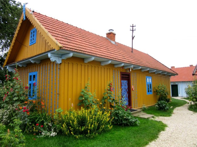Przegonieni z zagrody Curyłowej, nieco zniesmaczeni (oraz ja zrozpaczona :)) poszliśmy przed siebie, ale kierując się do punktu wyjścia.  Już straciłam nadzieję, że uda mi się wejść do środka którejś chaty, aż tu nagle okazało się, że na samym końcu (albo na początku – w zależności, od której strony się idzie :)) znajdowały się najpiękniejsze „okazy”. W rzędzie ustawione były domy, do których można było normalnie wejść, nawet panie same zapraszały do środka. Zazwyczaj jednak okazywało się, że to jedynie budynek na pokaz z jedną przyozdobiona izbą, zaś w drugiej znajdował się sklepik z pamiątkami. Nie mniej jednak warto było tam zajrzeć.