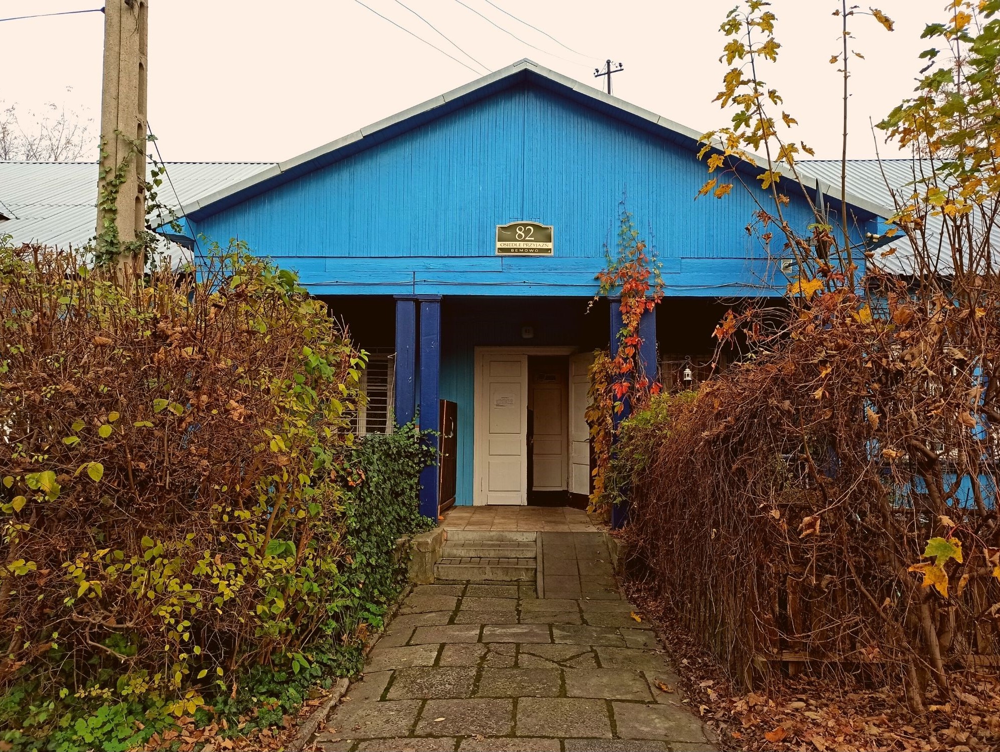 Osiedle Przyjaźń mieści się między największymi ulicami na Bemowie/Woli: Górczewską, Jana Olbrachta, Powstańców Śląskich oraz trasą kolejową. Pomimo tego, że umiejscowione jest pomiędzy ruchliwymi trasami samochodowymi i tramwajowymi, skręcając w boczną uliczkę odnosi się wrażenie, że przenieśliśmy się na obrzeża stolicy, na spokojną wioskę, ukrytą perełkę z dala od miejskiego zgiełku. Przechadzając się pomiędzy uliczkami miałam wrażenie, że znalazłam się w warszawskiej wiosce Smerfów, a tamtejsze budynki kojarzyły mi się z  cerkwiami na Podlasiu, chyba przez te kolory 🙂 To ewenement zarówno w skali Warszawy jak i całego kraju. Na próżno szukać drugiego takiego osiedla.