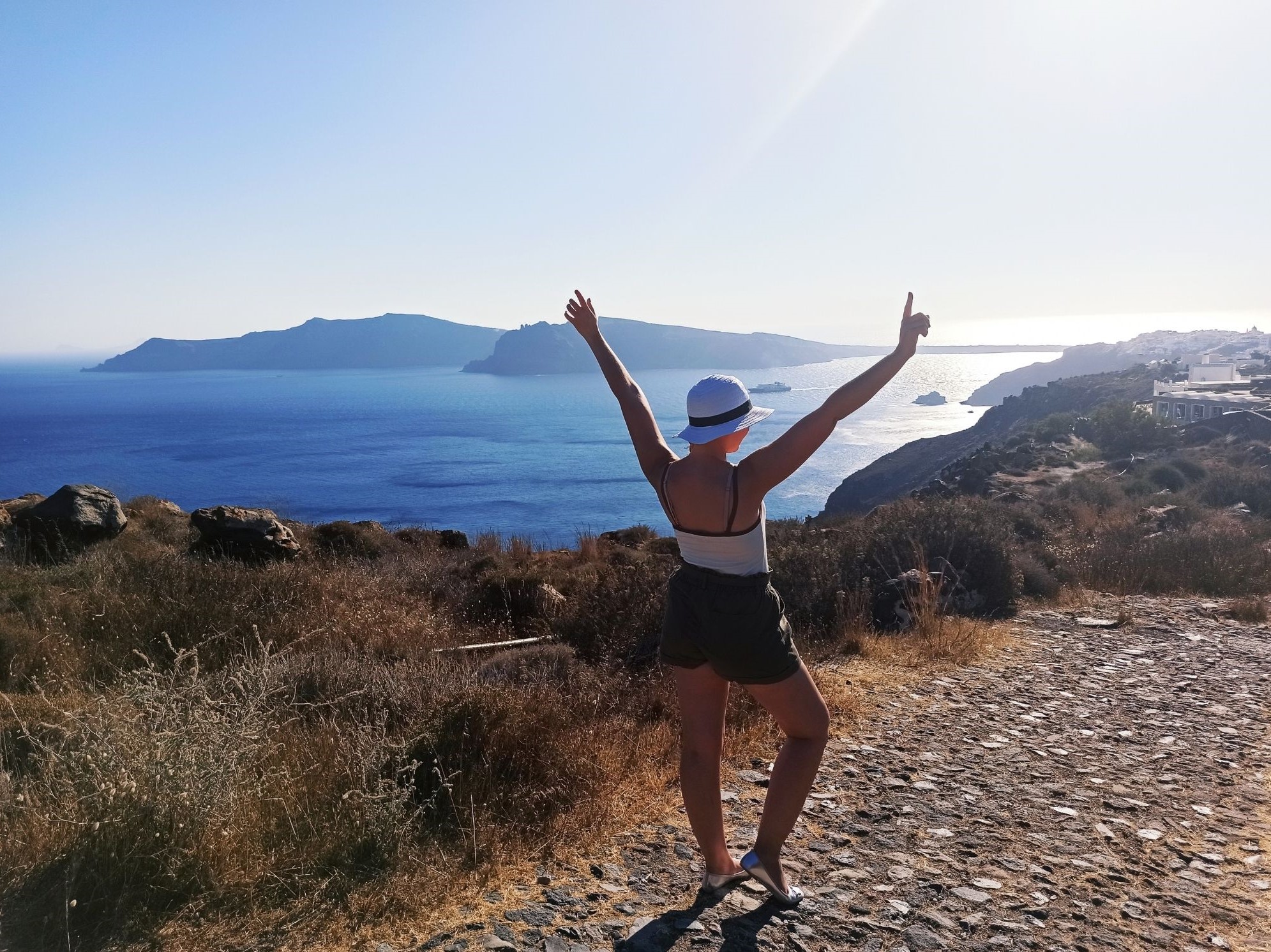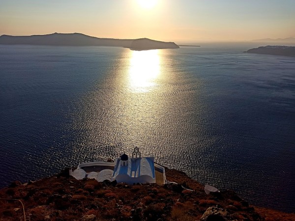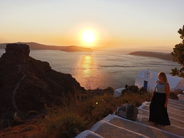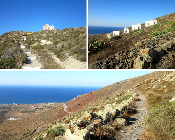 O tym miejscu napiszę osobny post, bo zdecydowanie na to zasługuje. Chciałam jedynie o nim napomnieć, żeby nie umknęło 🙂 Jeśli ktoś lubi chodzić, albo ma za dużo czasu i pragnie napawać się pięknymi widokami, to zdecydowanie warto zrobić sobie trekking tą trasą biegnącą wzdłuż kaldery. Szlak liczy 14 km, więc jest nie jest krótki. Dla wprawionych i doświadczonych wędrowców to pikuś, ale jeśli dodać do tego żal lejący się z greckiego nieba i ponad 30 stopni, to już nie koniecznie jest takie proste. Ja wystartowałam z Oia po godzinie 17-tej, a i tak upał był niemiłosierny.