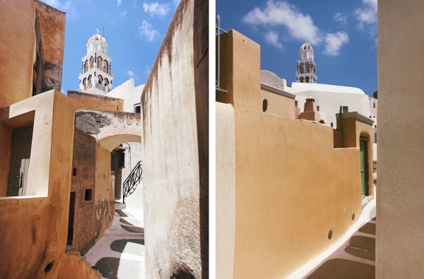 Architektura tej malowniczej osady jest zachwycająca, chociaż tak naprawdę nie wyróżnia się od tej w stolicy wyspy. Na uwagę zasługuje kościół Pangia Malteza, który ukrywa się u stóp miasteczka, z widokiem na kalderę oraz Skaros. Znajduje się w nim ikona Maryi, którą najprawdopodobniej znaleziono na Malcie. To właśnie tam zaczyna się droga na Skaros.