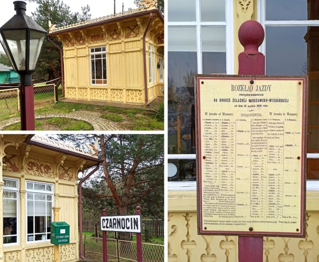 Perełką Skansenu Rzeki Pilicy jest budynek poczekalni kolejowej z przystanku Czarnocin. Ten całkowicie drewniany i misternie zdobiony obiekt, został zbudowany w 1896 roku jako pawilon ekspozycyjny Dyrekcji Kolei Warszawsko-Wiedeńskiej na odbywającą się w 1896 roku Wszechrosyjską Wystawę Przemysłowo-Artystyczną w Niżnym Nowogrodzie. Po zakończeniu wystawy w 1897 roku pawilon ten został zdemontowany i przewieziony na trasę Kolei Warszawsko-Wiedeńskiej. Ustawiono go na przystanku „Wolbórka” pod Będkowem. Przez lata budynek stopniowo podupadał. Kiedy kolej przestała go użytkować w zastraszającym tempie popadł w ruinę. Od zupełnego zniszczenia ocaliły ten zabytek wspólne starania władz samorządowych Tomaszowa Mazowieckiego i Skansenu Rzeki Pilicy. Ich rezultatem było podjęcie w dniu 27 października 2006 roku przez Wojewódzkiego Konserwatora Zabytków decyzji o przeniesieniu budynku tej poczekalni do Tomaszowa Mazowieckiego i jej odbudowie w Skansenie Rzeki Pilicy, gdzie zyskał nowe życie.