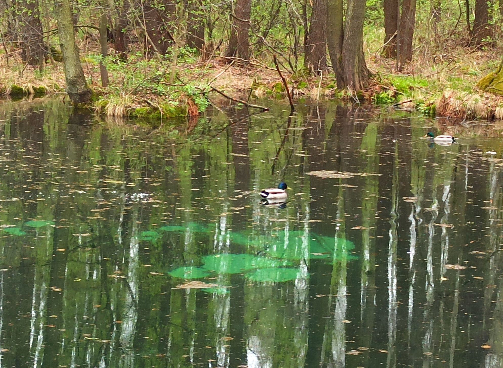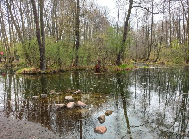 Wyjątkowa barwa wody Niebieskich Źródeł jest zjawiskiem o charakterze optycznym. Krystalicznie czysta woda z wapiennych źródeł pochłania promienie czerwone, natomiast przepuszcza odbite od dna fale niebieskie i zielone, które właśnie dają efekt niebieskiej barwy. Kolory zależą również od pory dnia i pogody. Niestety ja w tym czasie trafiłam na pochmurny dzień, więc nie było widać tego całego efektu 😦