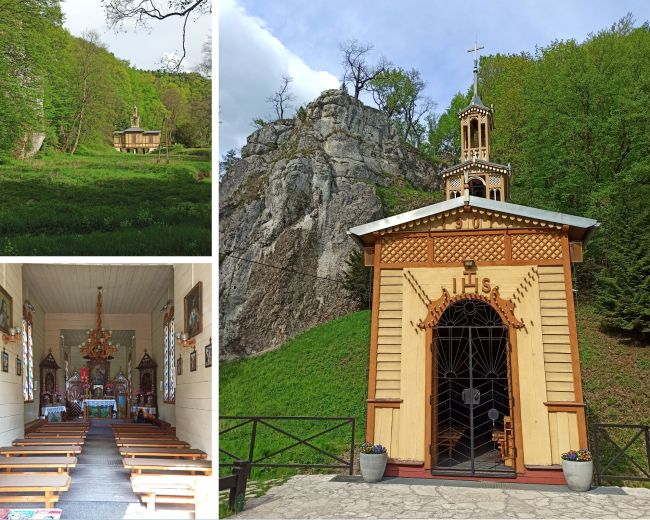 Kaplica „Na Wodzie” p.w. św. Józefa Rzemieślnika (Robotnika), znajduje się w miejscu dawnych łazienek zdrojowych, które przerobiono na obiekt sakralny w 1901 r. Kaplica usytuowana jest ponad potokiem na betonowych podporach, co wiązało się wg miejscowej tradycji z zarządzeniem cara Mikołaja II, zabraniającym budowy obiektów sakralnych na ziemi ojcowskiej, wobec czego kaplicę zbudowano „na wodzie”. Kaplica ojcowska jest przykładem drewnianego budownictwa stylowego, opartego częściowo na miejscowych, a częściowo na zapożyczonych motywach zdobniczych (tzw. styl szwajcarsko-ojcowski). Budynek kaplicy, o drewnianej konstrukcji, ma rzut symetryczny, prostokątny z przenikającym go kwadratem w środku. Kaplicę wieńczy ażurowa wieżyczka gruntownie odnowiona w 1996 r.