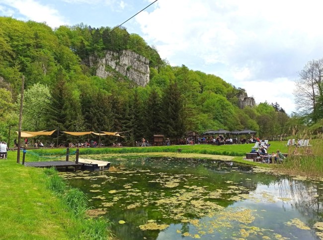 Jeśli będziecie w okolicach Ojcowa, po wędrówce po przepięknej Dolinie Prądnika, koniecznie wpadnijcie na lokalnego specjału, czyli pstrąga. Serwowany jest w dwóch wersjach: grillowany oraz wędzony. Ja skusiłam się na tego drugiego i powiem tylko tyle – niebo w gębie 🙂 Rybki są świeże, wyławiane prosto ze stawów hodowlanych, których jest tam na pęczki. Te tutaj znajdują się w najbliższej okolicy restauracji, w pięknych okolicznościach przyrody.
