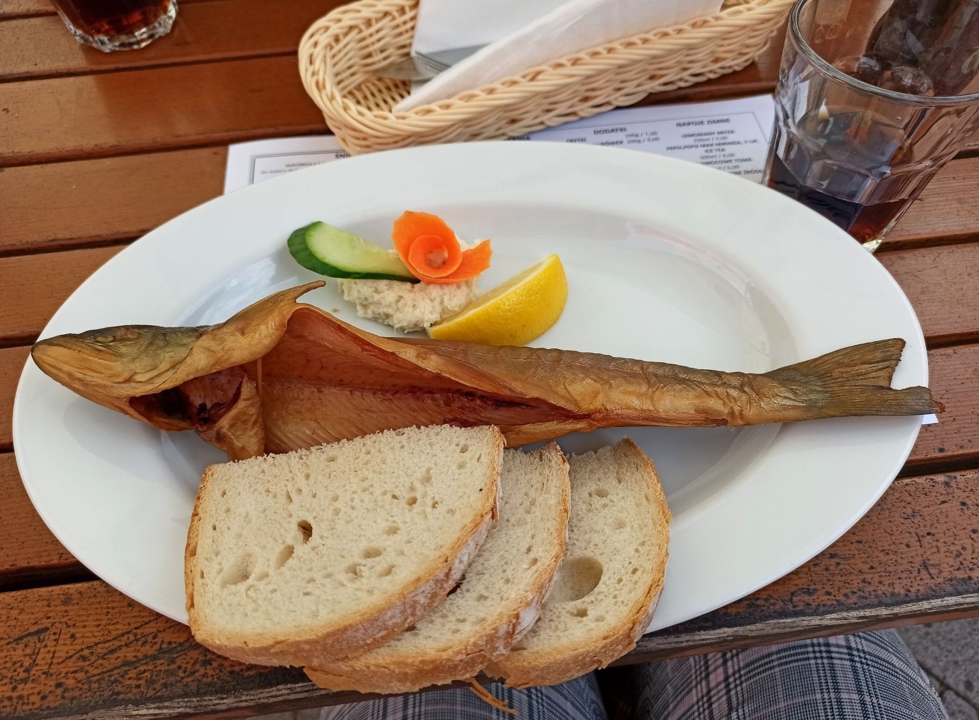 Jeśli będziecie w okolicach Ojcowa, po wędrówce po przepięknej Dolinie Prądnika, koniecznie wpadnijcie na lokalnego specjału, czyli pstrąga. Serwowany jest w dwóch wersjach: grillowany oraz wędzony. Ja skusiłam się na tego drugiego i powiem tylko tyle – niebo w gębie 🙂 Rybki są świeże, wyławiane prosto ze stawów hodowlanych, których jest tam na pęczki. Te tutaj znajdują się w najbliższej okolicy restauracji, w pięknych okolicznościach przyrody.