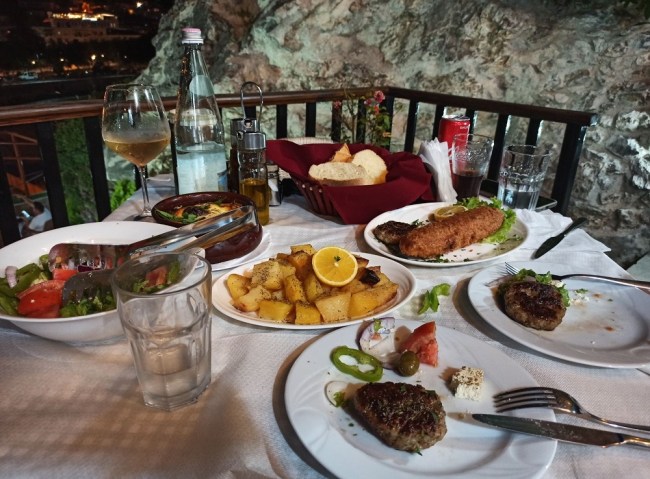 Czego warto spróbować? Ja zamówiłam lokalny specjał Biftek Berati, czyli ichniejszy devolay. Kolejnego dnia zamawiałam wszystkiego po trochu, m. in. kofte (grillowane mięso), pieczony jogurt z jagnięciną czy village salad. Trzeba przyznać, że porcje są tak duże, że nie sposób to wszystko zjeść 🙂