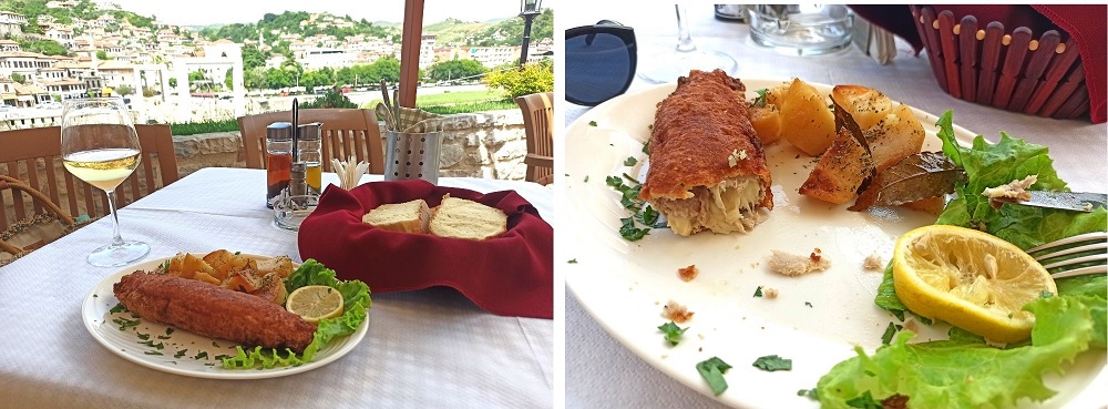 Czego warto spróbować? Ja zamówiłam lokalny specjał Biftek Berati, czyli ichniejszy devolay. Kolejnego dnia zamawiałam wszystkiego po trochu, m. in. kofte (grillowane mięso), pieczony jogurt z jagnięciną czy village salad. Trzeba przyznać, że porcje są tak duże, że nie sposób to wszystko zjeść 🙂