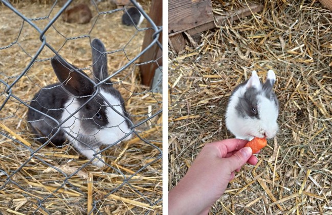 Zwierzaki można karmić. Pokarm, czyli marchewkę, sałatę i inne warzywa można dostać u pani przy wejściu albo u opiekuna zwierzątek.