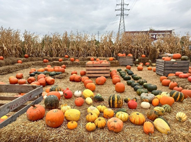 Nie znam się na dyniach, ale na stronie znalazłam informację, że na terenie znajduje się wiele rodzajów dyń miedzy innymi kamo kamo, prowansalska, Acorn, Jarahdale, dynia bez łupinowa, masłowa, hokkaido, Casperita , Makaronowa , Duże Dynie Pomarańczowe Autumn Gold, Sweet Dumpling Squash, Polska odmiana Bambino i inne. Co ciekawe, podobno na terenie znajduje się… 70 000 sztuk! Cóż, mogę to potwierdzić, bo widziałam je na własne oczy.