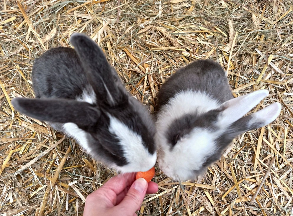 Zwierzaki można karmić. Pokarm, czyli marchewkę, sałatę i inne warzywa można dostać u pani przy wejściu albo u opiekuna zwierzątek.