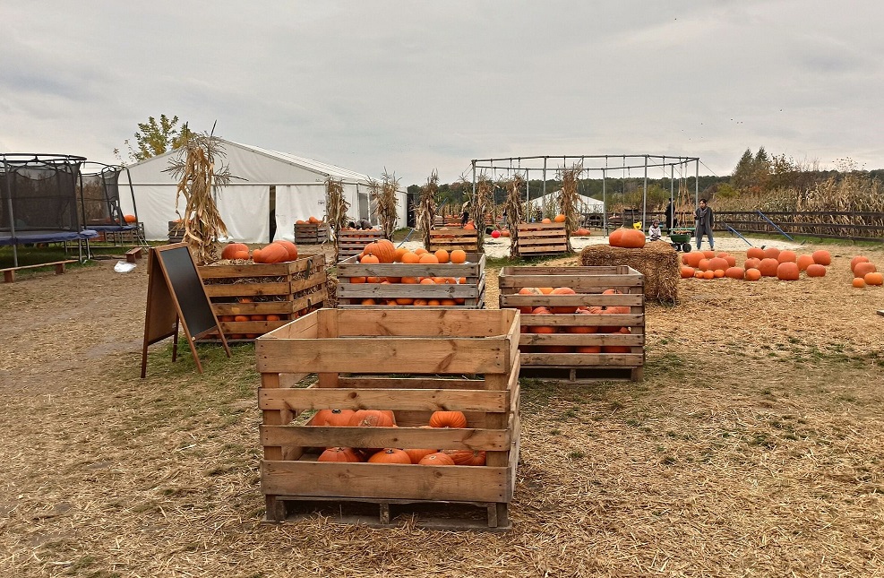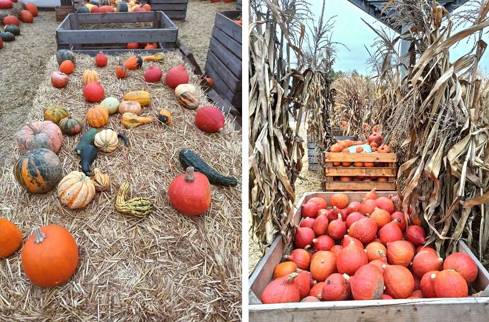 Nie znam się na dyniach, ale na stronie znalazłam informację, że na terenie znajduje się wiele rodzajów dyń miedzy innymi kamo kamo, prowansalska, Acorn, Jarahdale, dynia bez łupinowa, masłowa, hokkaido, Casperita , Makaronowa , Duże Dynie Pomarańczowe Autumn Gold, Sweet Dumpling Squash, Polska odmiana Bambino i inne. Co ciekawe, podobno na terenie znajduje się… 70 000 sztuk! Cóż, mogę to potwierdzić, bo widziałam je na własne oczy.